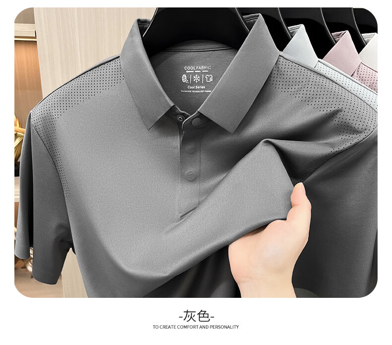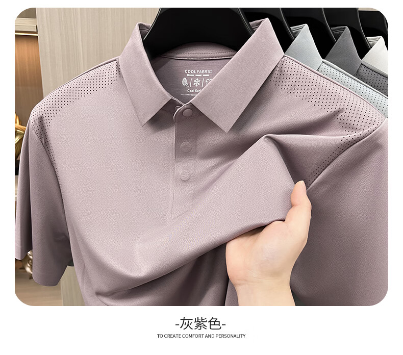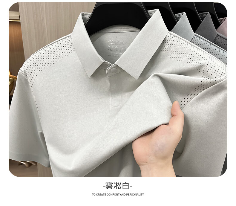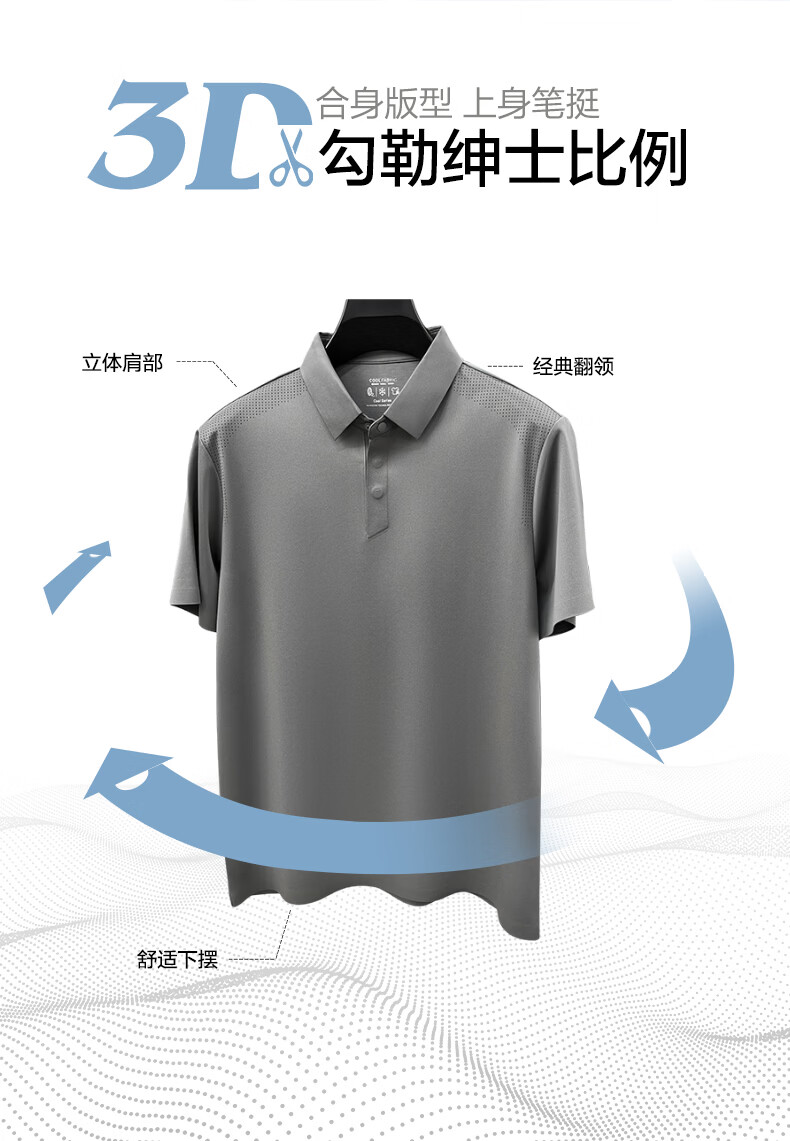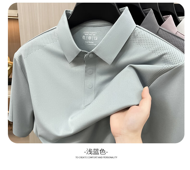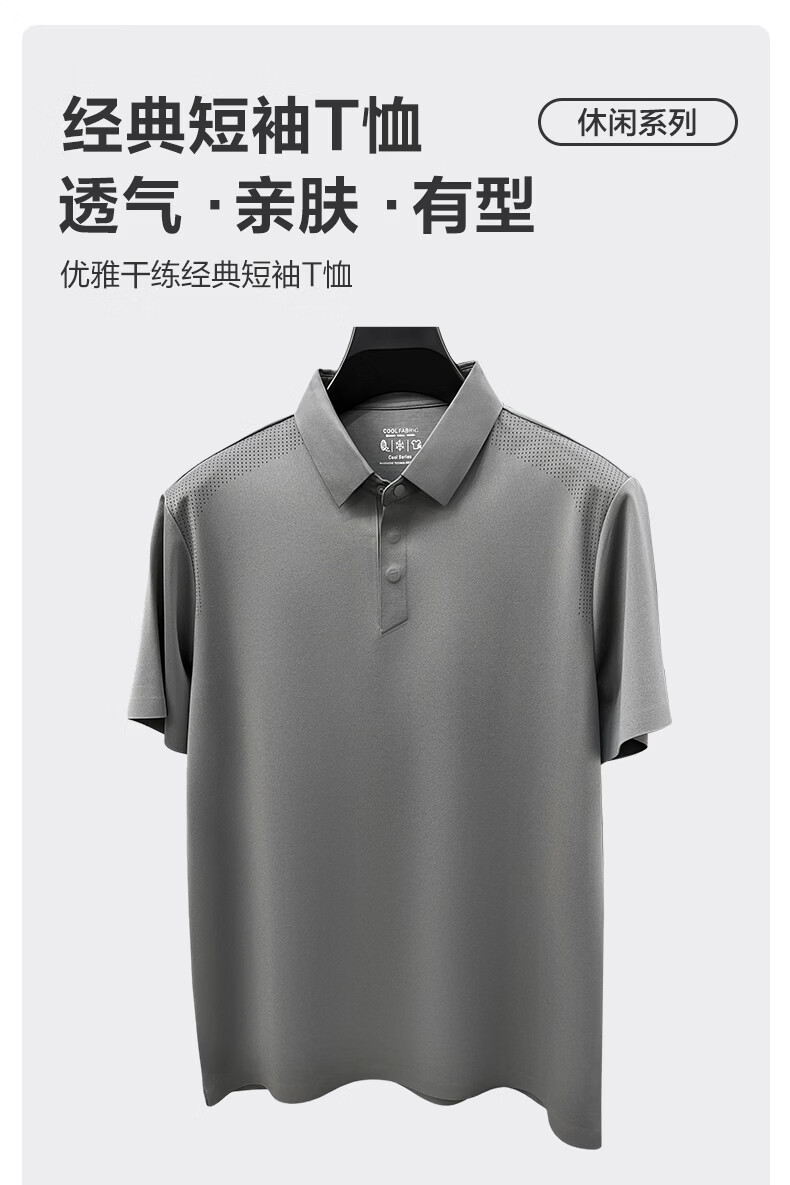 SHANSHAN杉杉【透气防晒抗菌】短袖t恤男翻领POLO衫凉感夏季新款 浅蓝色 M /170