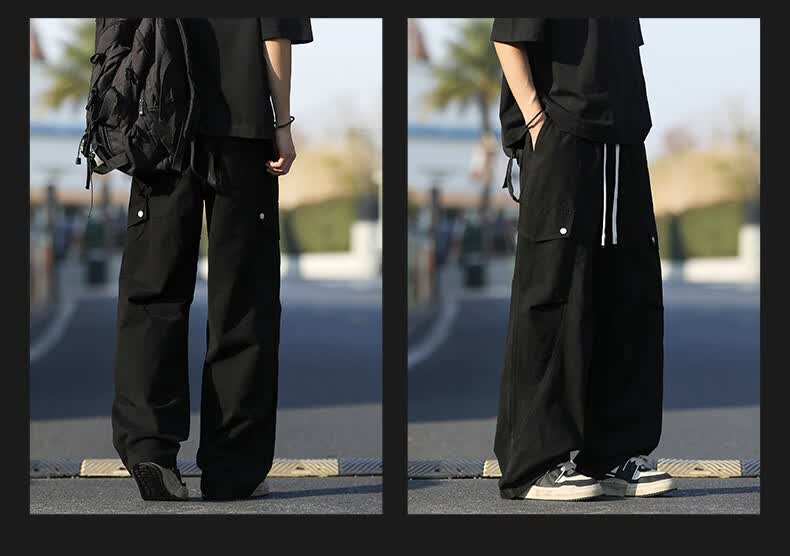 真维斯(Jeanswest)2026休闲裤子春夏季宽松直筒长裤微弹垂感男士潮牌阔腿西装长裤男 黑色+黑色【优惠两件装】 3XL 【建议150-175斤】