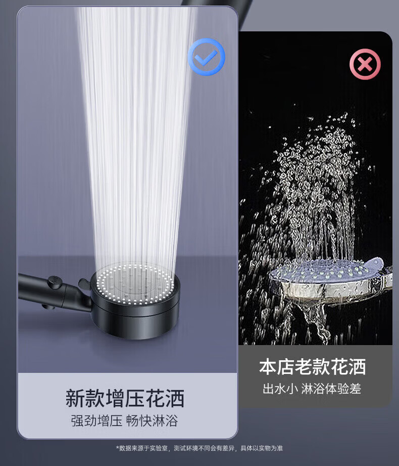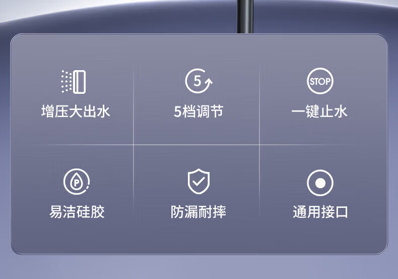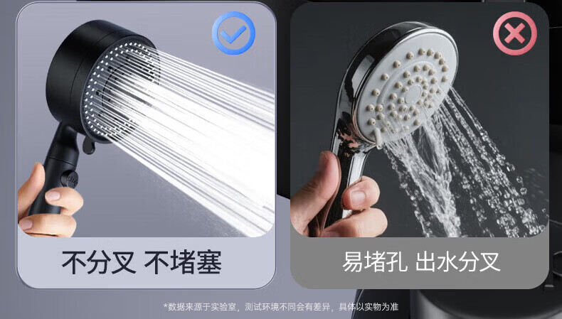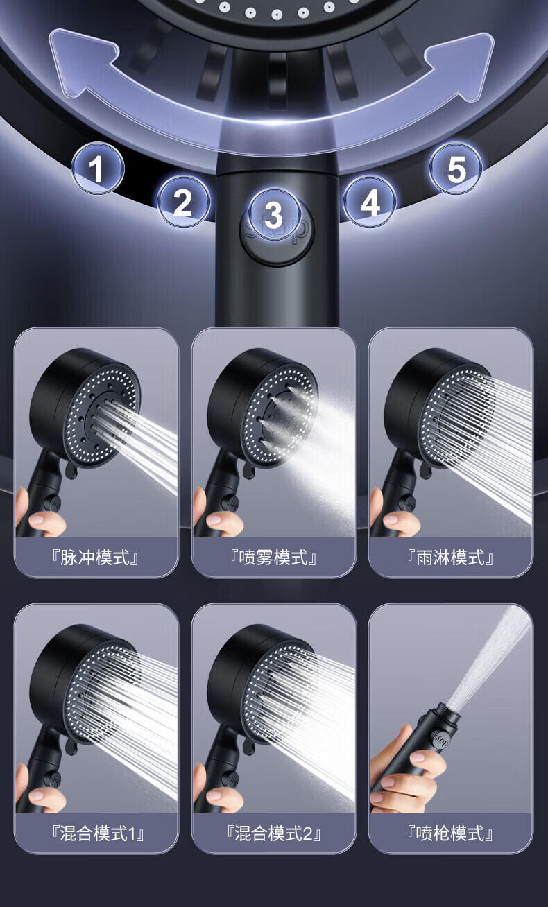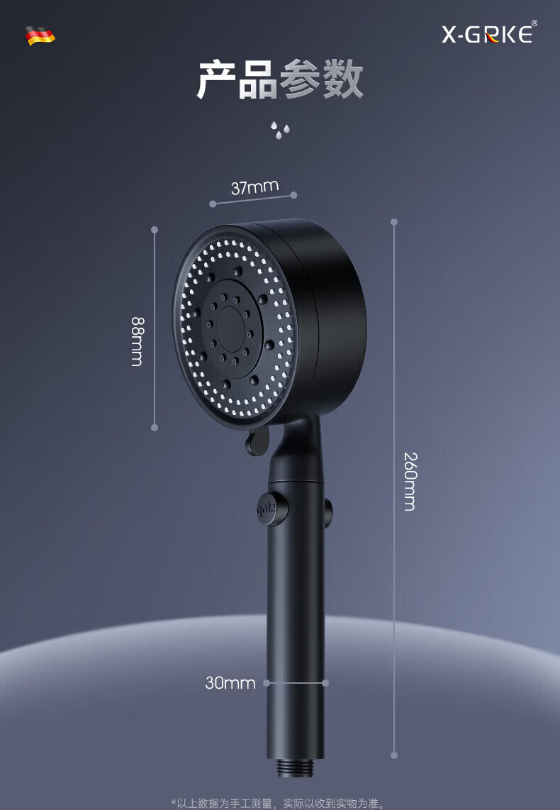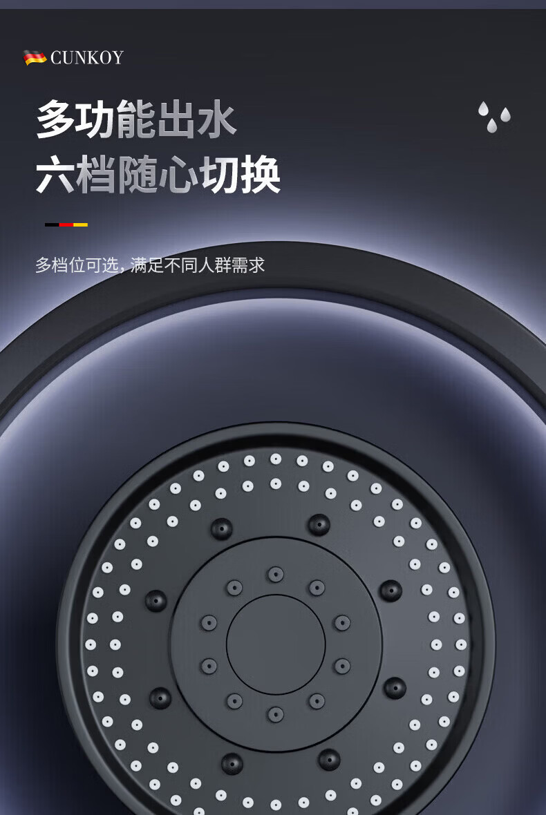 CUNKOY【德国】淋浴增压花洒喷头带软管一套浴室洗澡加压莲蓬花洒头套装 五档调节【一键止水】雅黑 强劲增压丨密集大出水
