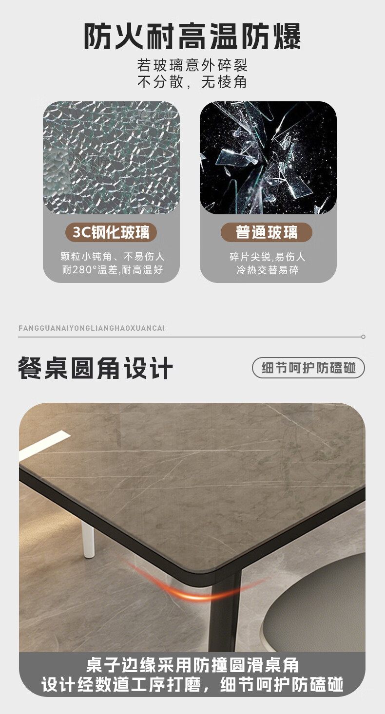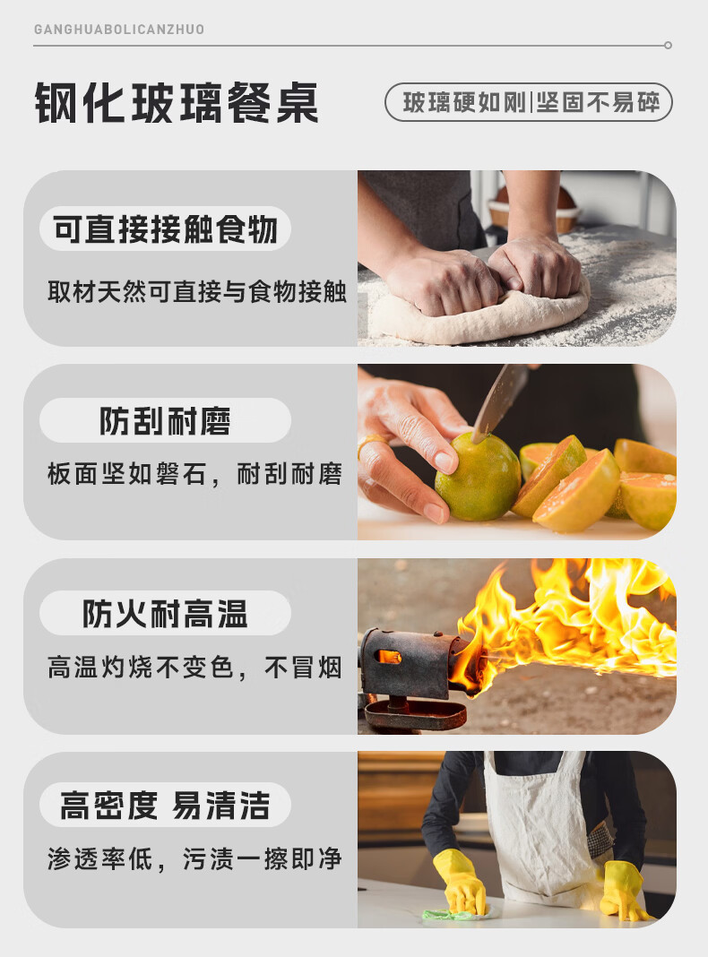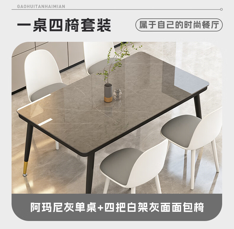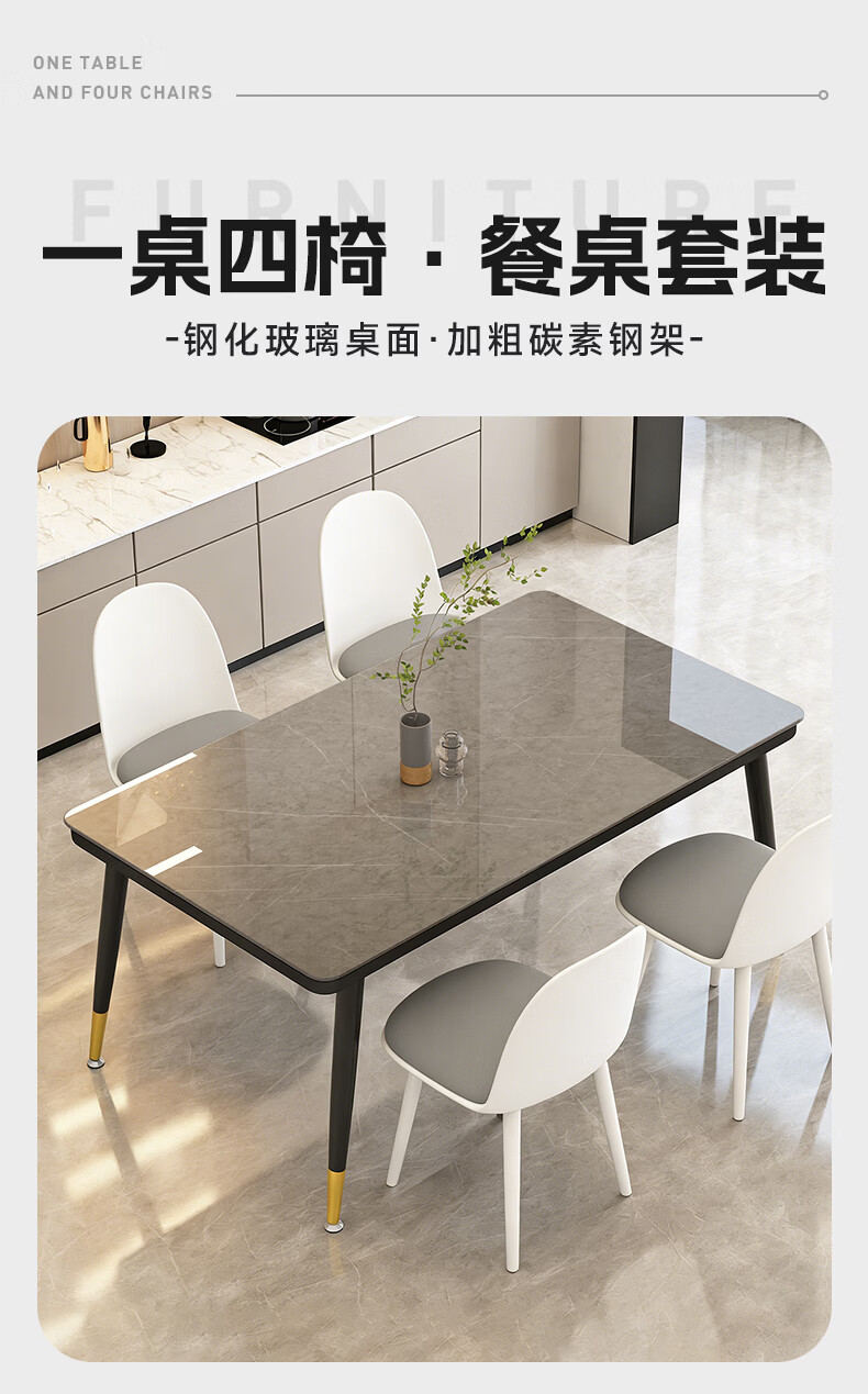 凡社一桌四椅 阿玛尼灰餐桌钢化玻璃1.2米+4把餐椅灰色