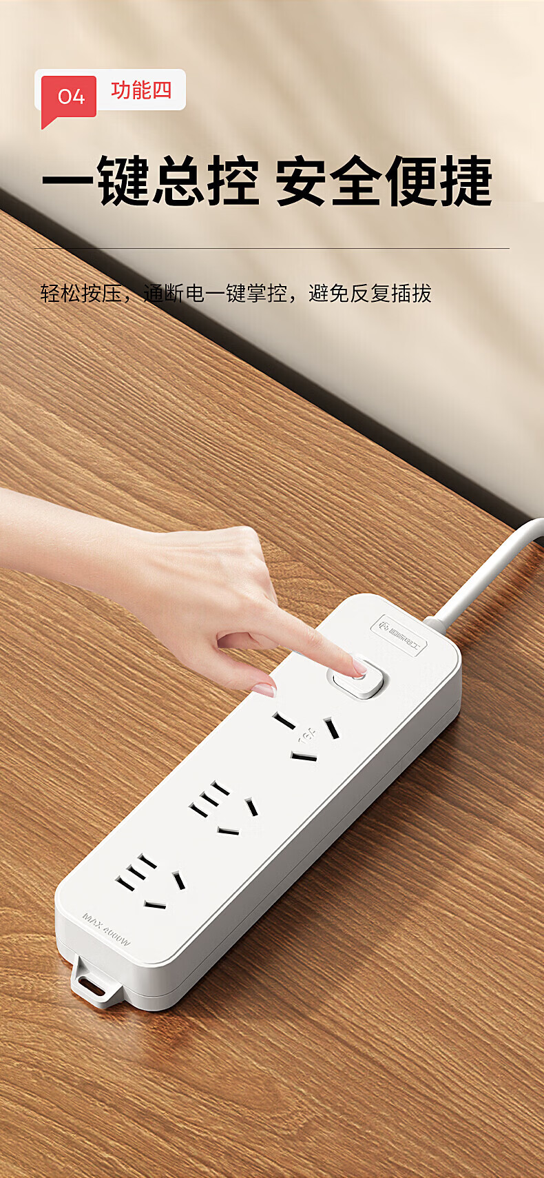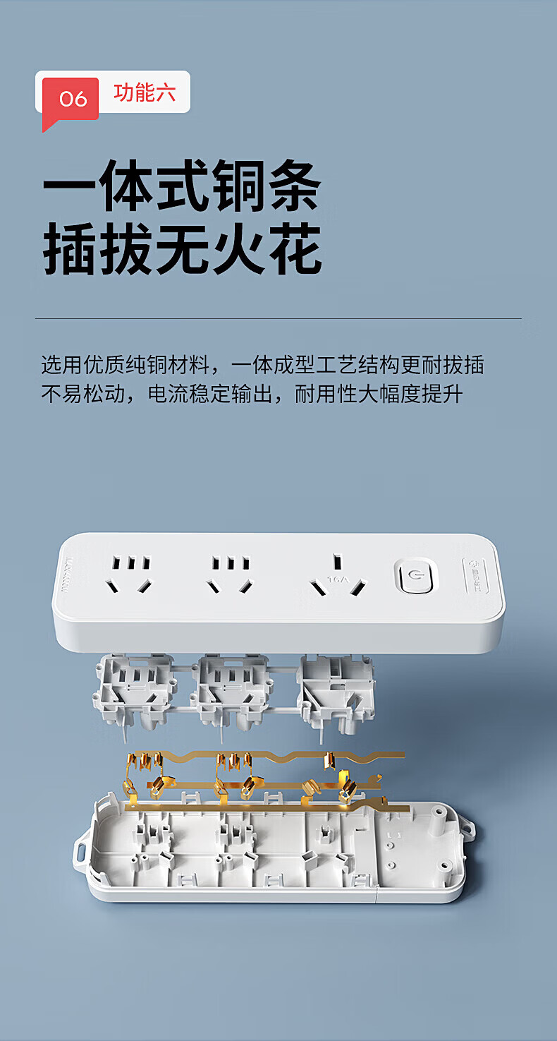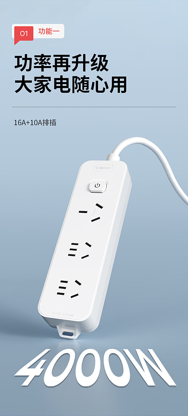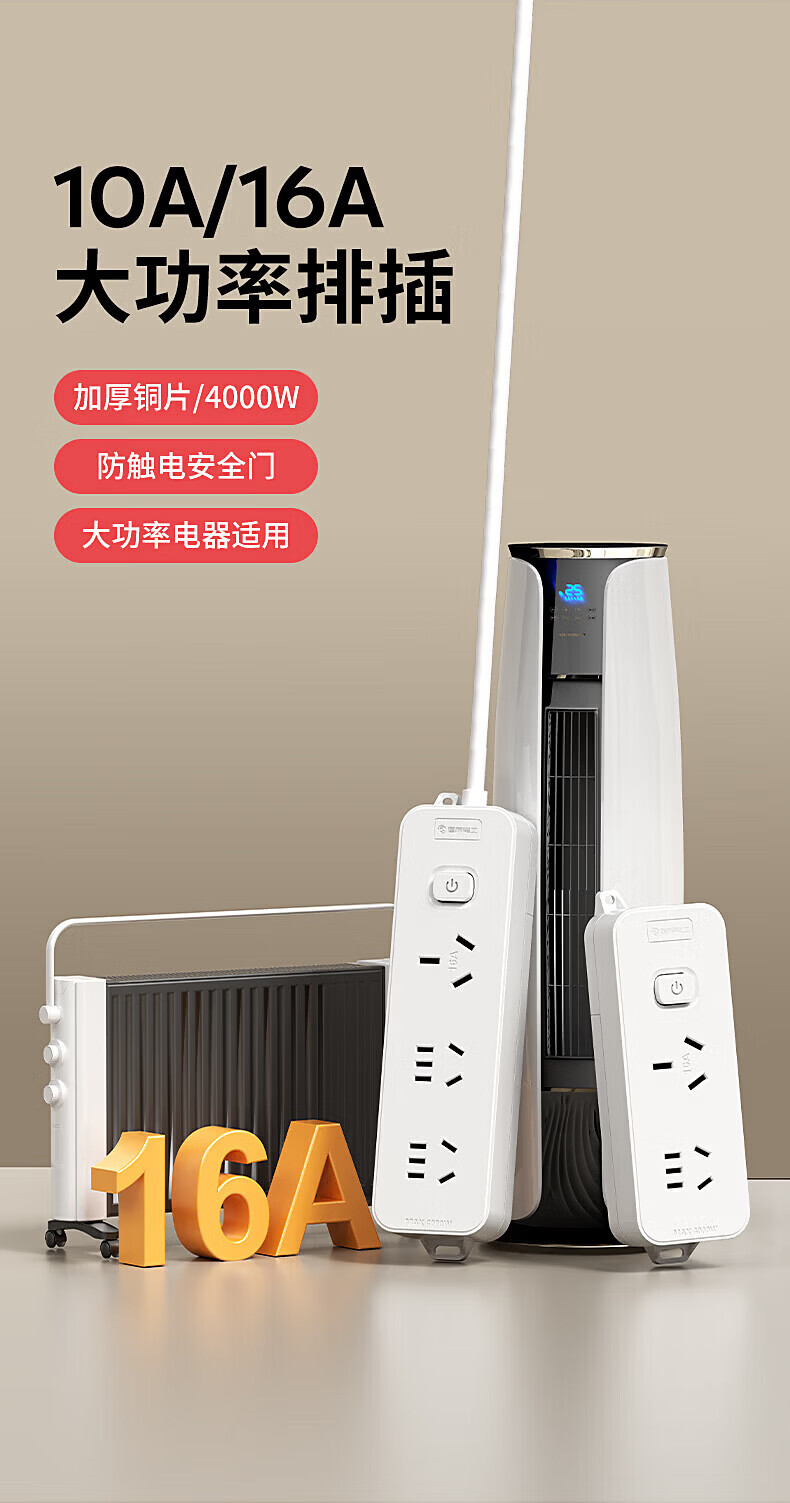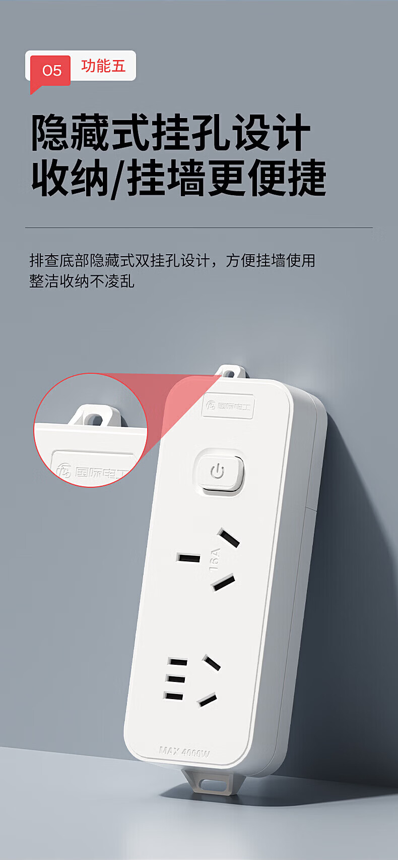 国际电工(FDD)新国标16A大功率排插家用空调热水器带开关插线板宿舍带线插排 【无开关】16A五孔-无线