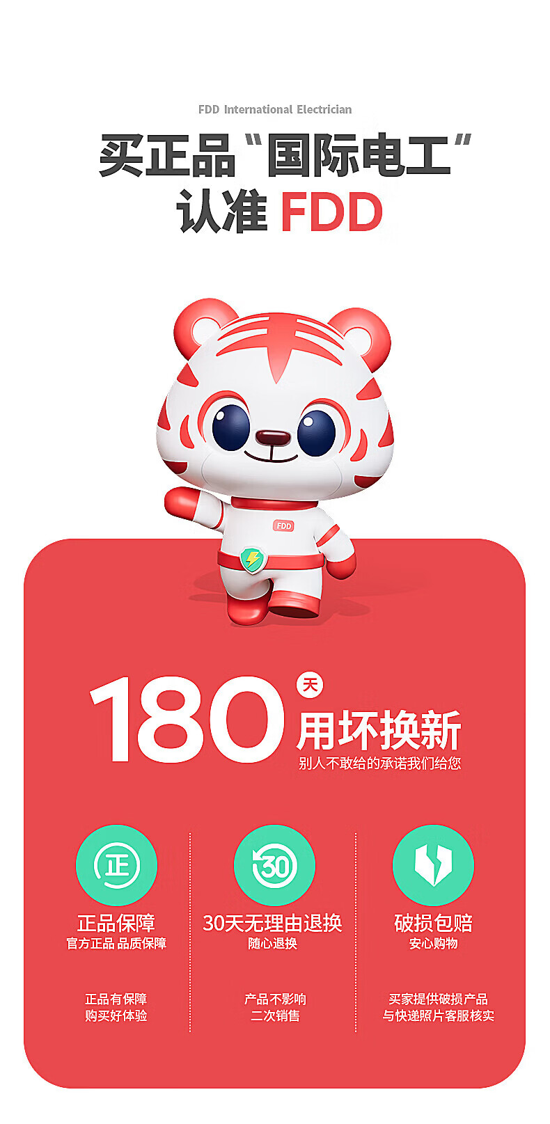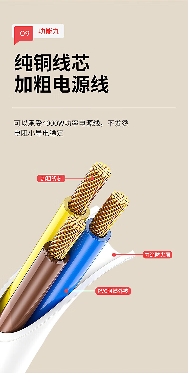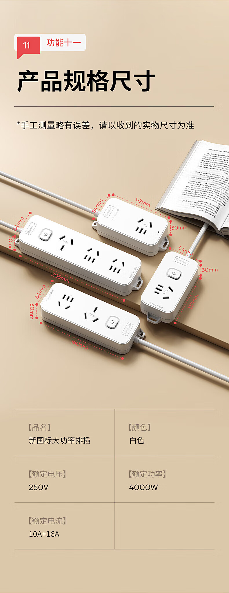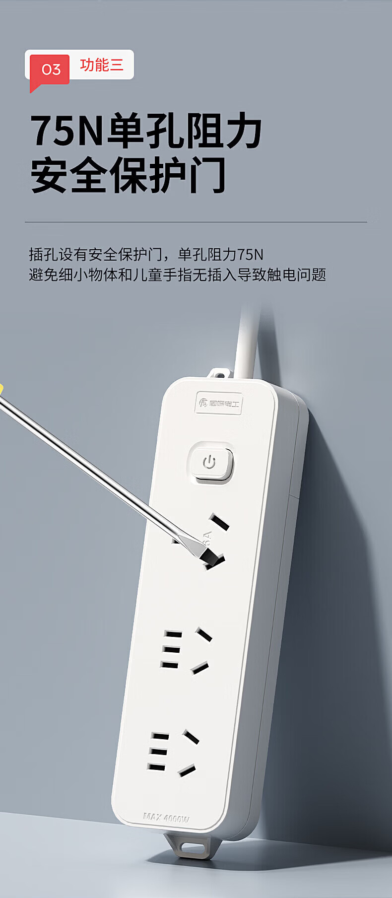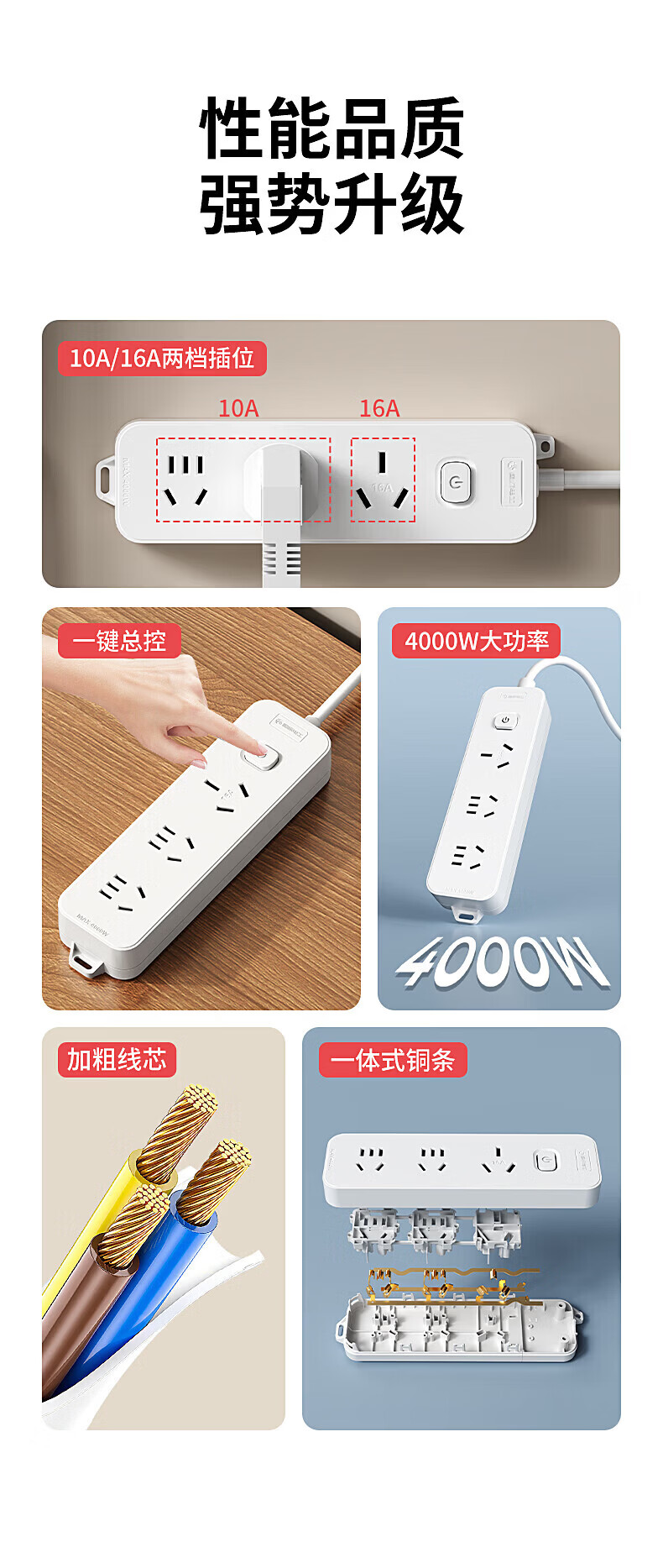国际电工(FDD)新国标16A大功率排插家用空调热水器带开关插线板宿舍带线插排 【无开关】16A五孔-无线
