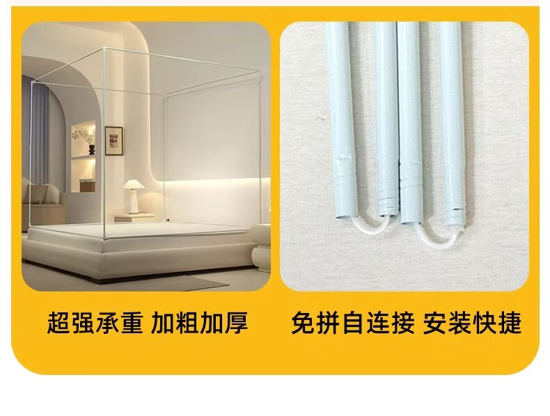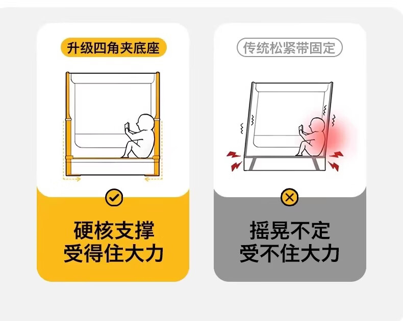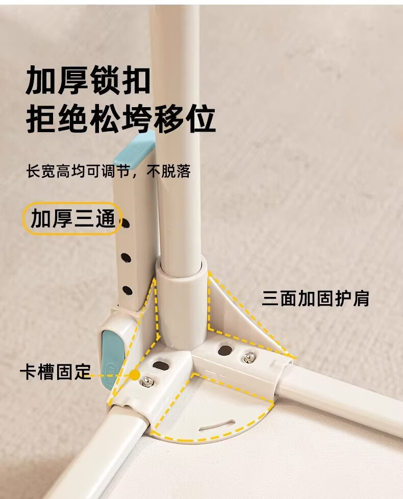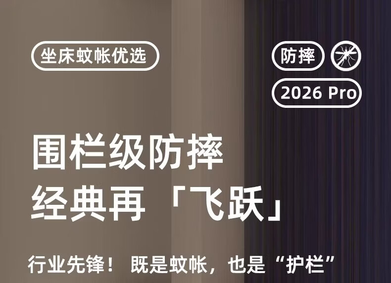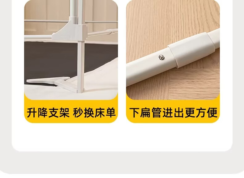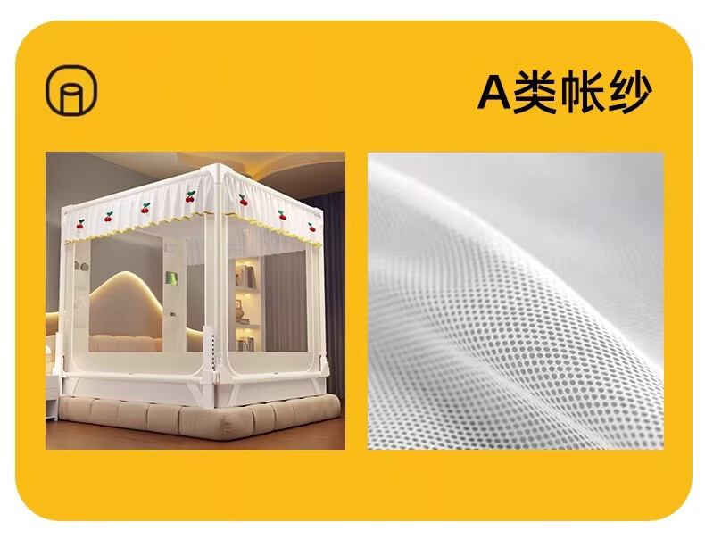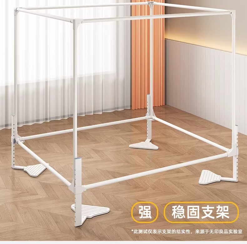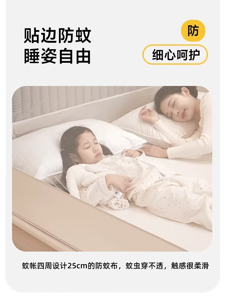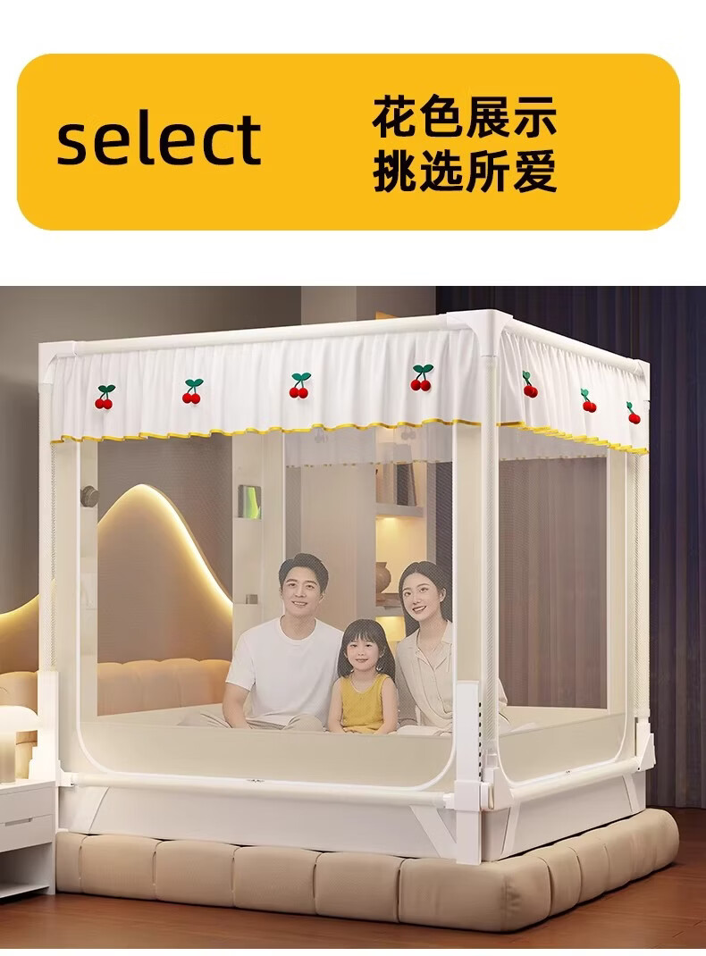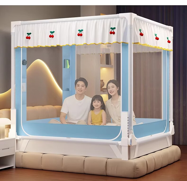 无印良品婴幼儿防摔蚊帐架1.8x2米家用a类宝宝防掉床围栏蚊帐一体式免安装 樱桃-米色【加粗托底支架 全包防摔MAX】 180cm*200cm*170cm 专利围栏大脚板支架