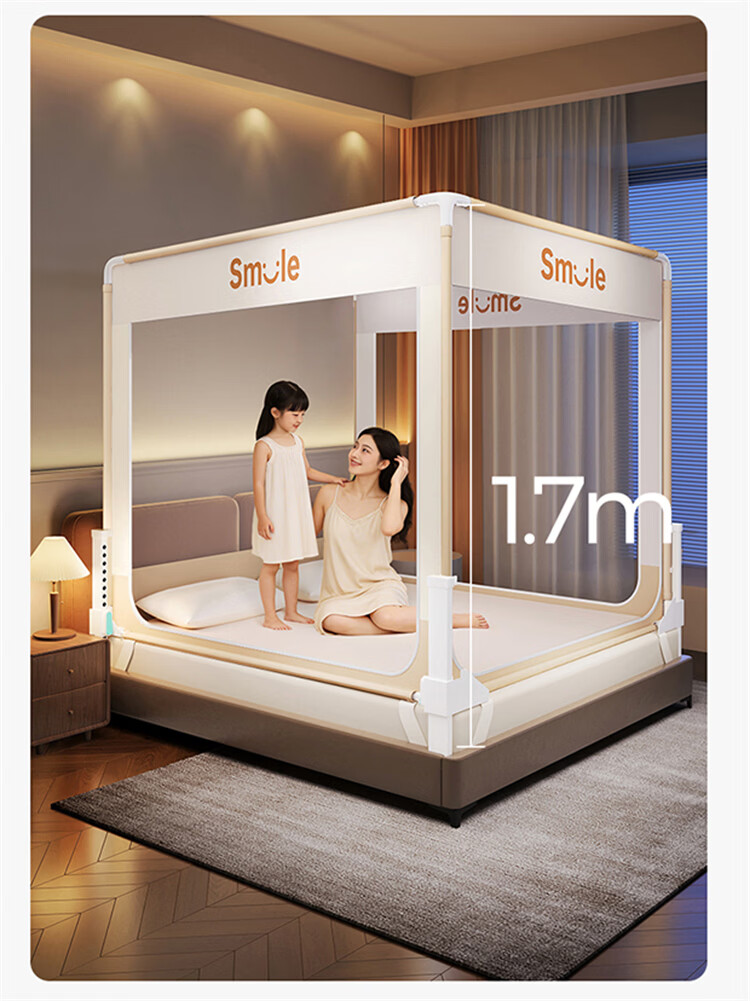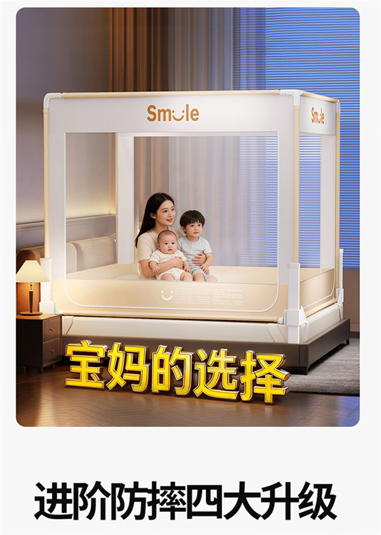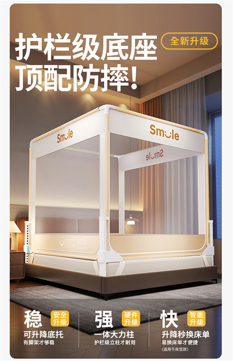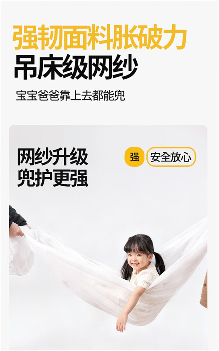 无印良品防摔床围栏蚊帐1.5米x2米家用2026新款加固加厚全底款卧室纹蚊帐 smile黄-全底款【加密帐纱 稳固防摔】 150cm*200cm*170cm 【升级大力士压脚支架】