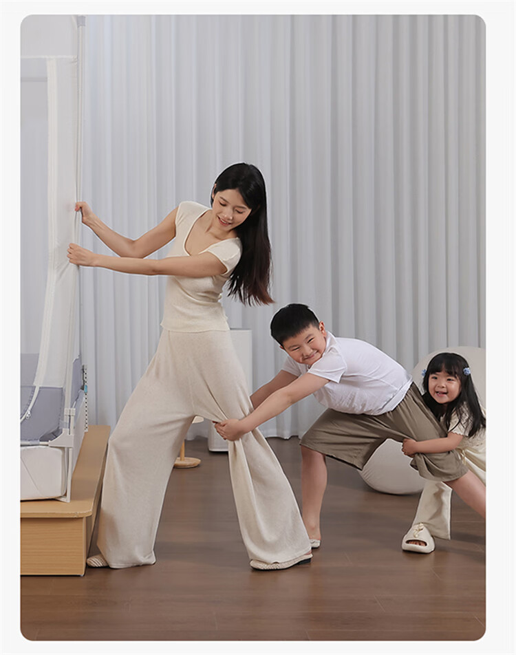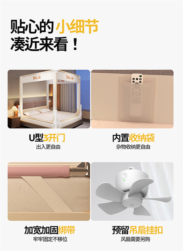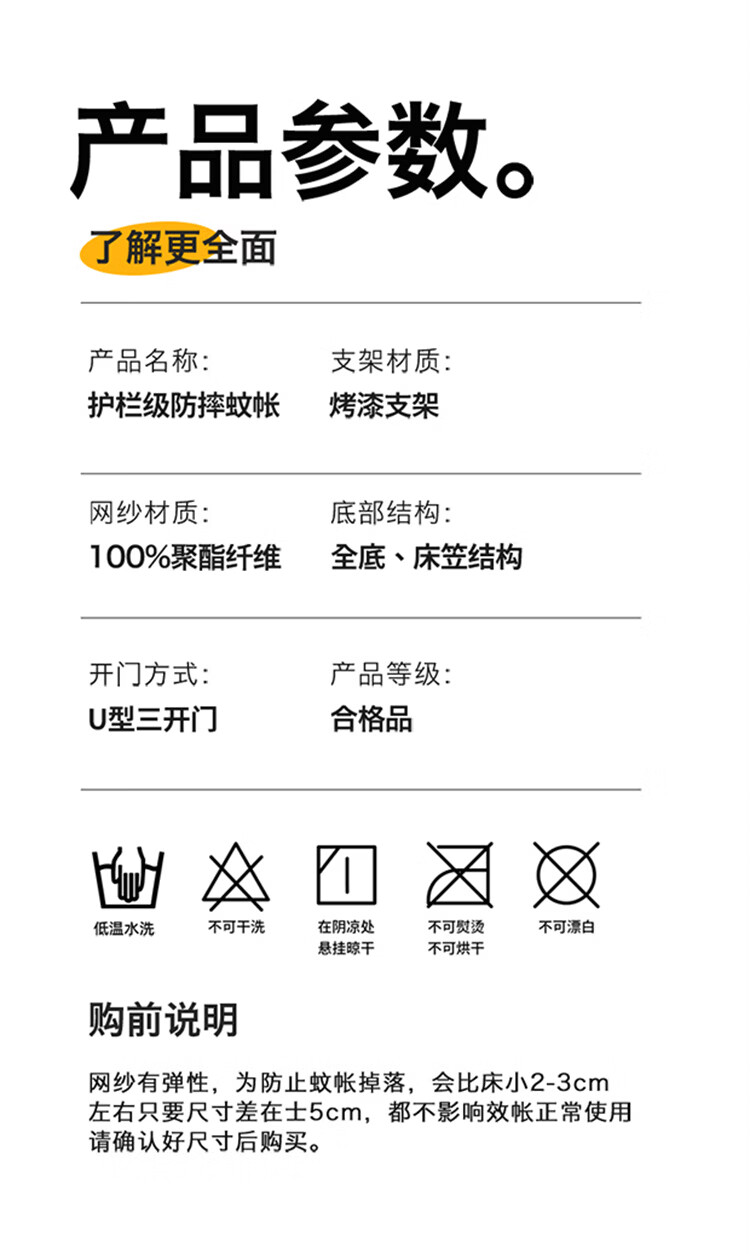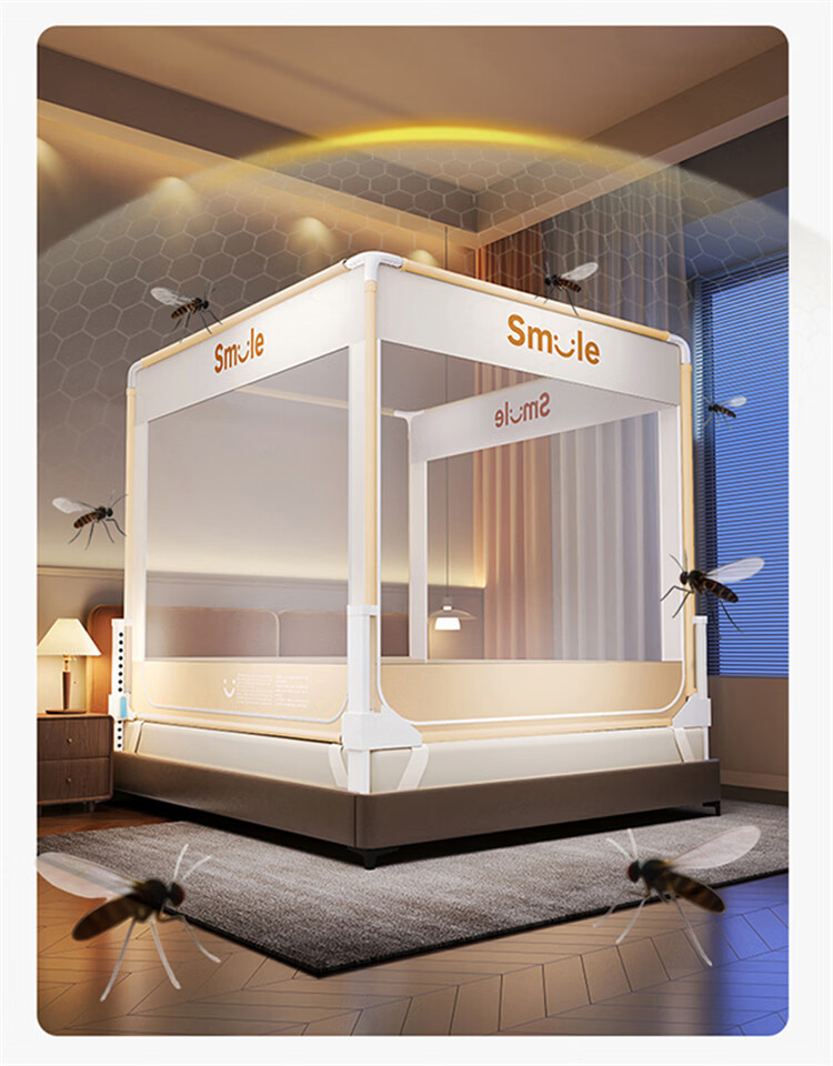 无印良品防摔床围栏蚊帐1.5米x2米家用2026新款加固加厚全底款卧室纹蚊帐 smile黄-全底款【加密帐纱 稳固防摔】 150cm*200cm*170cm 【升级大力士压脚支架】