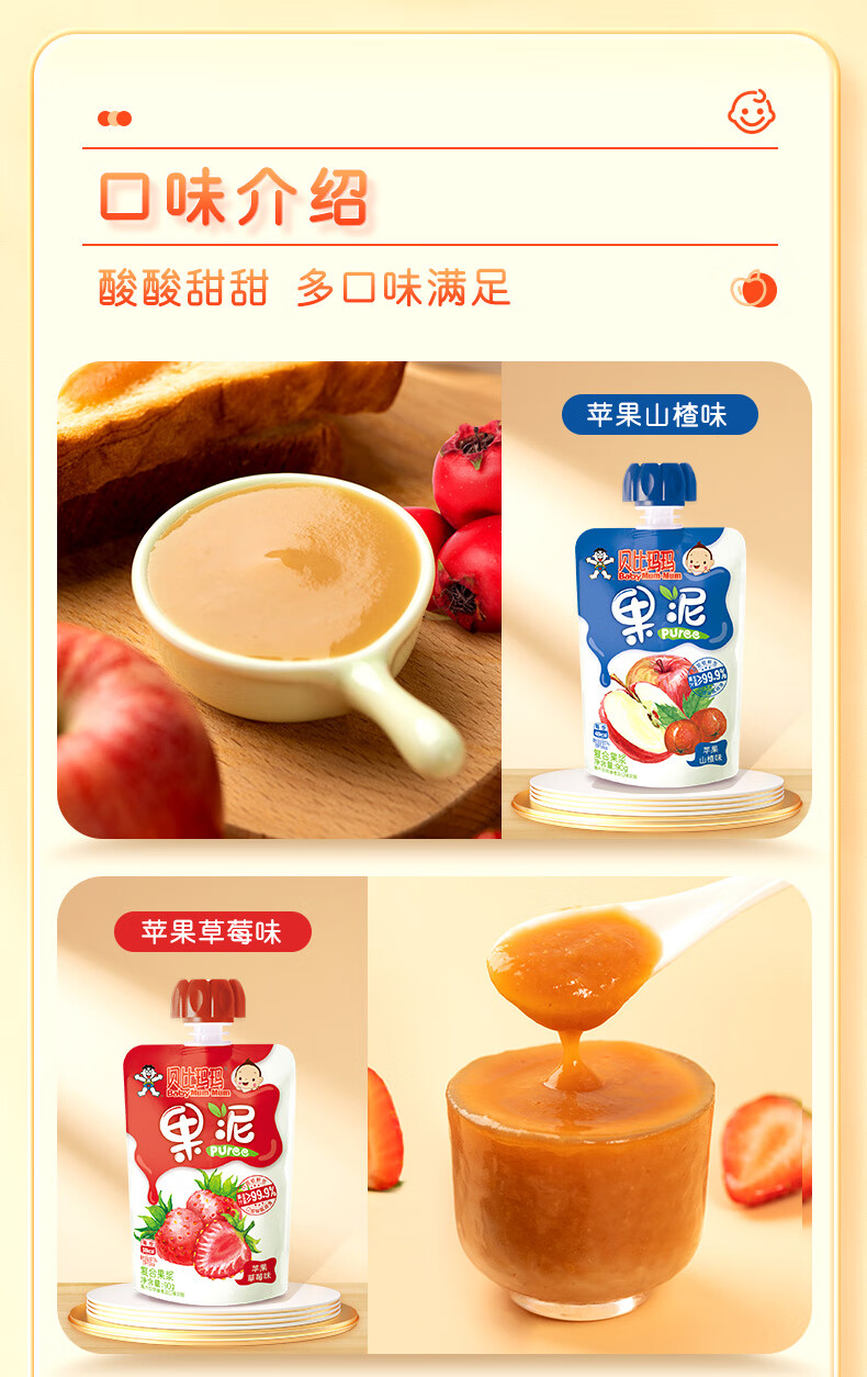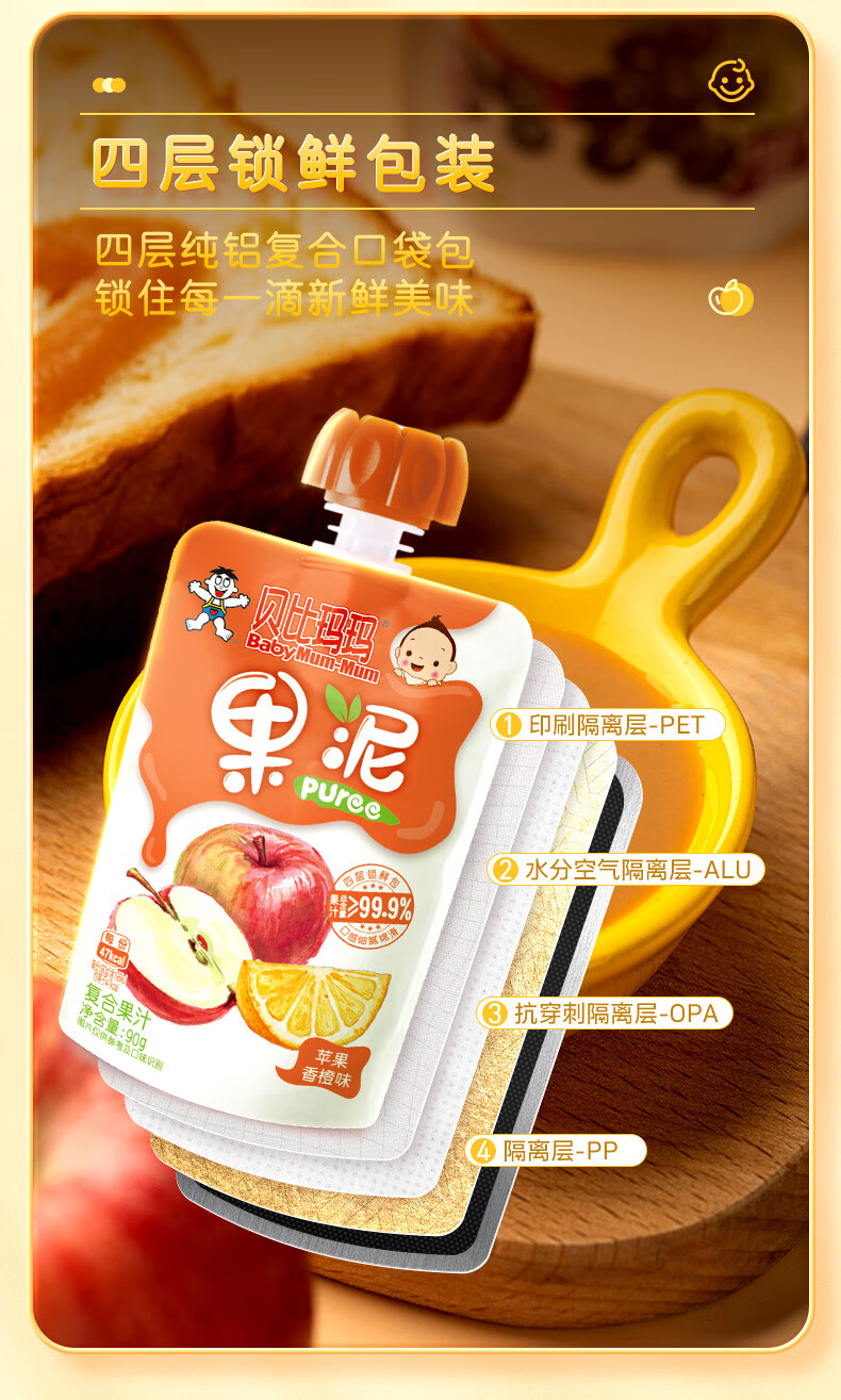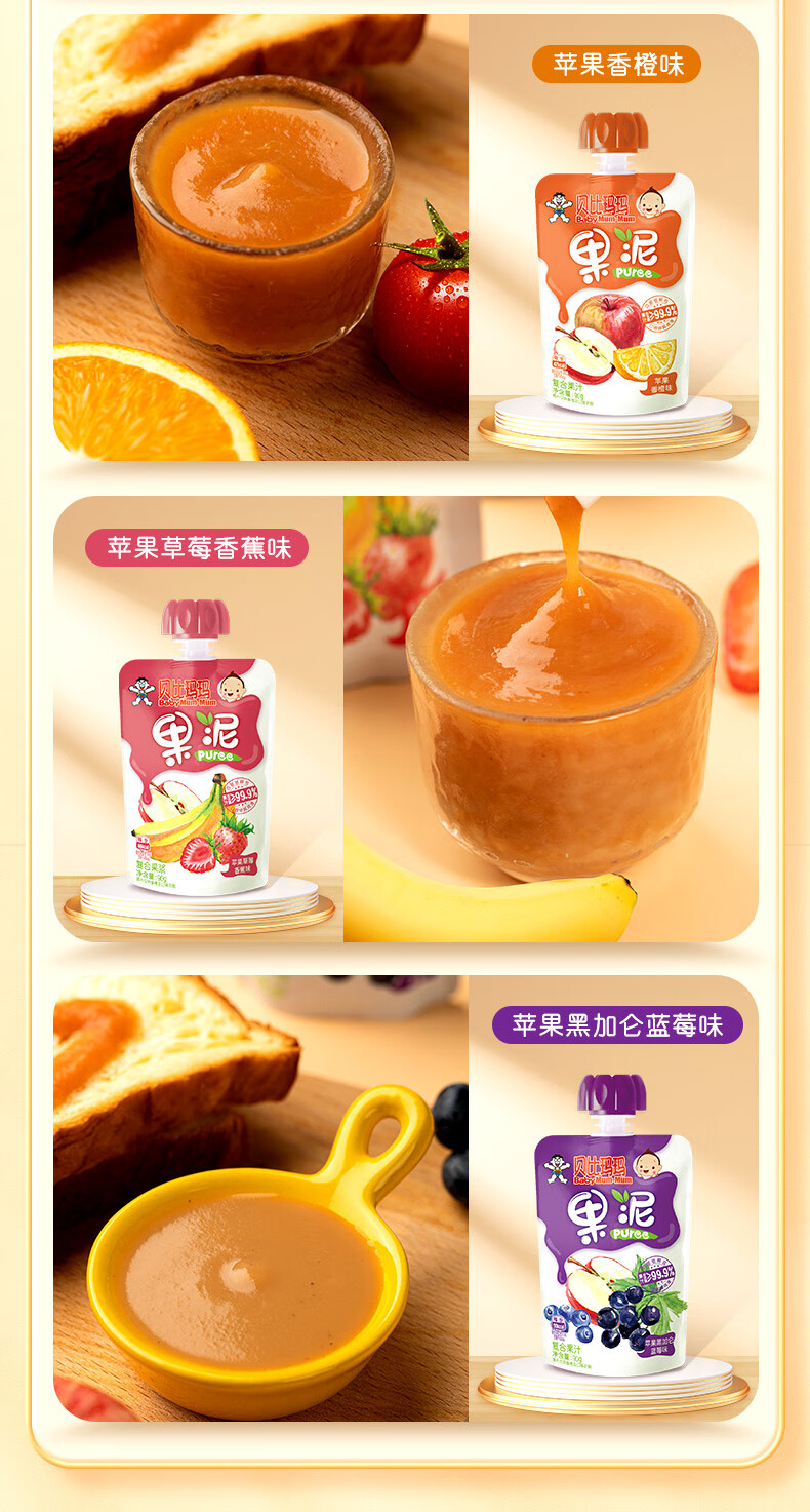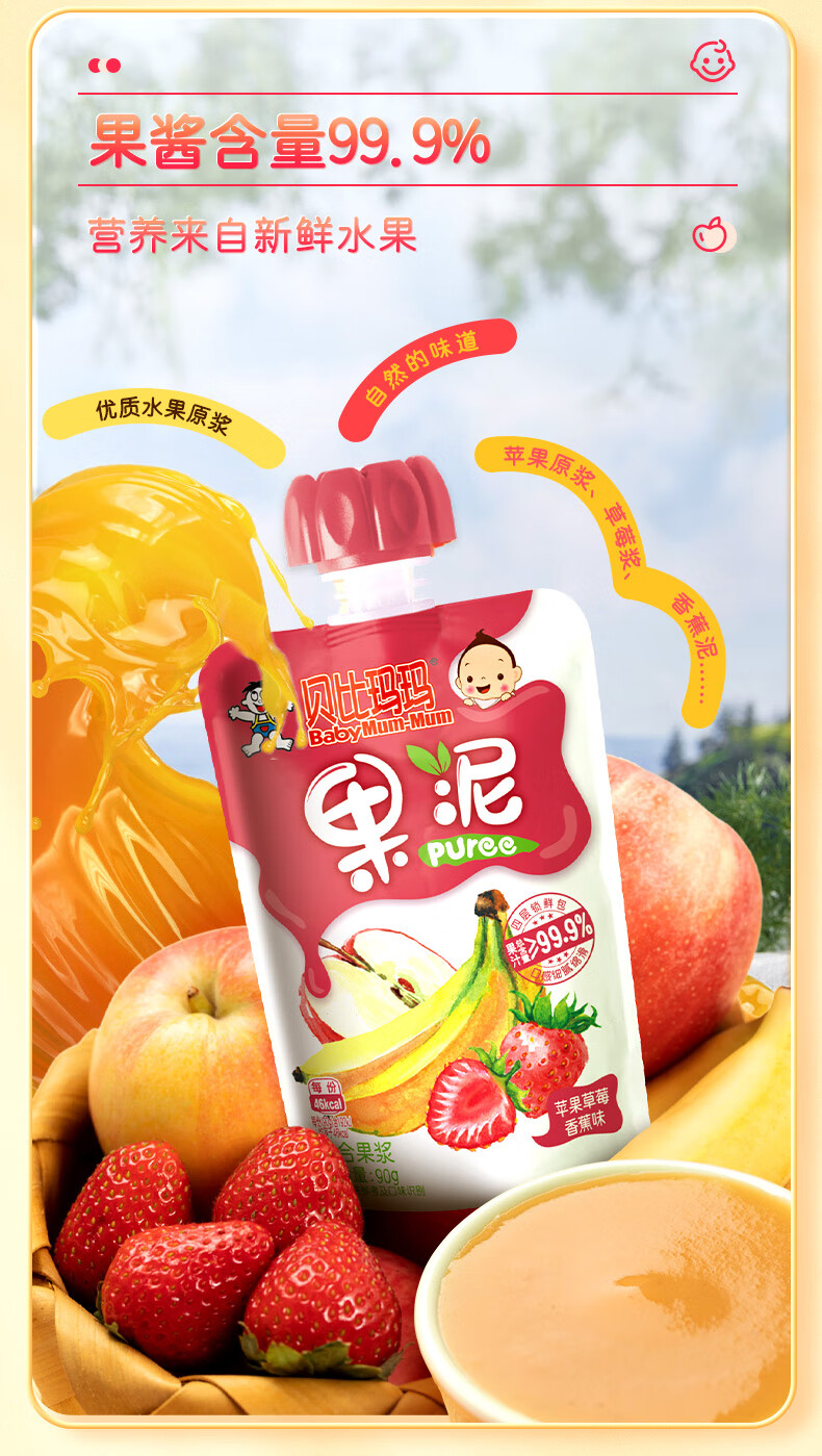 贝比玛玛旺旺旗下果泥儿童零食无添加糖盐草莓香蕉泥90g*1袋辅食泥