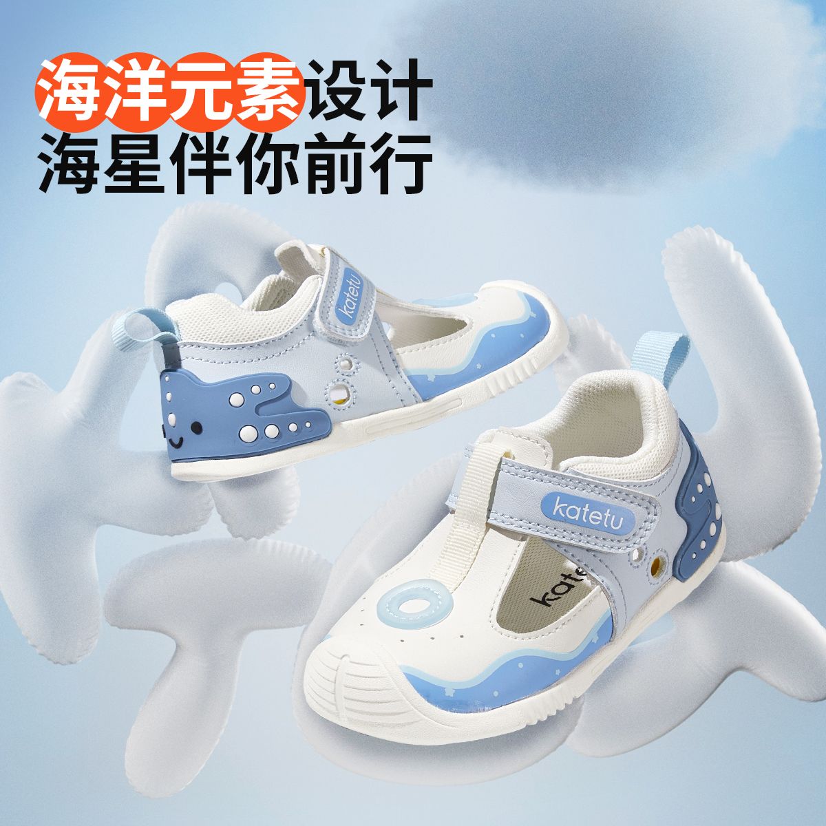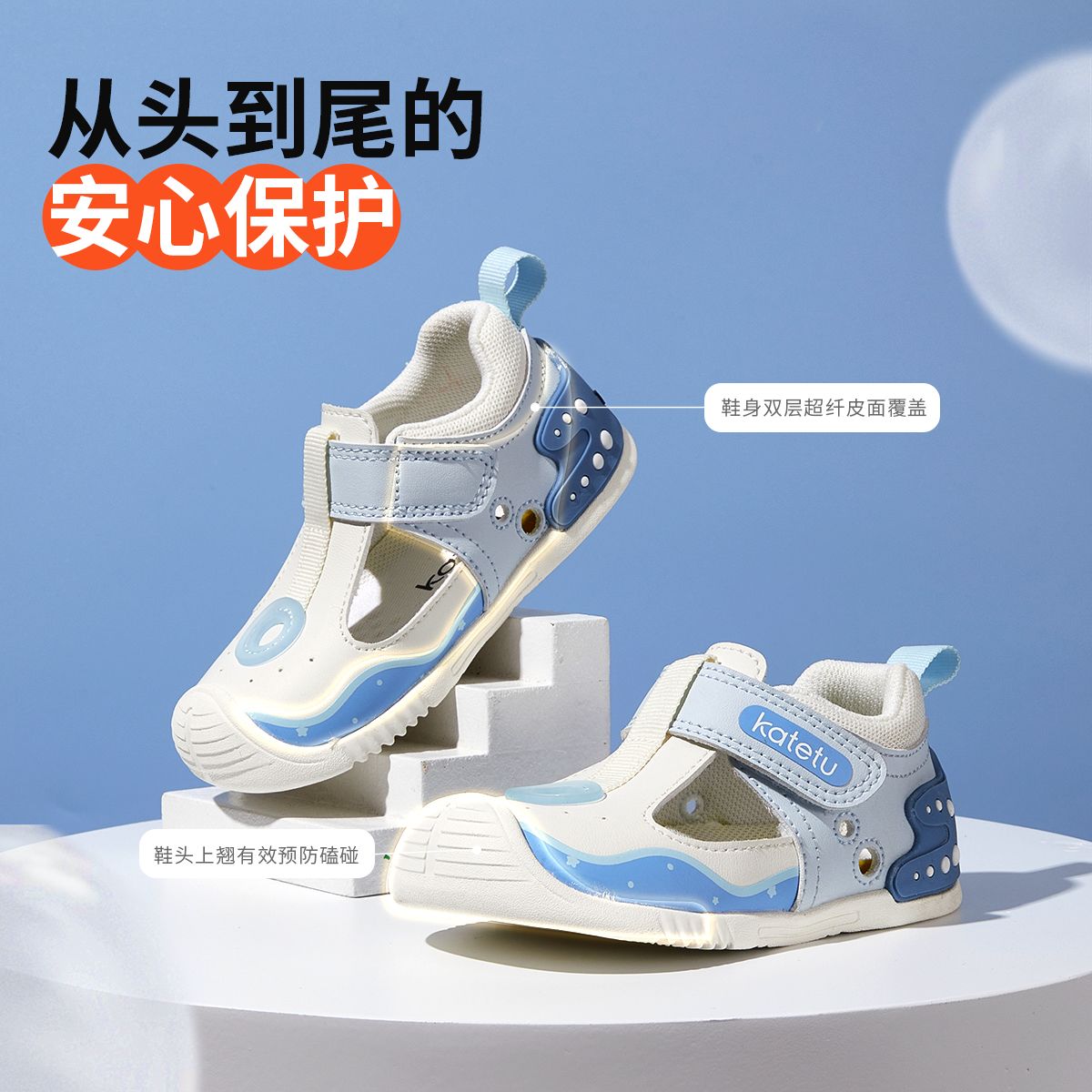 卡特兔儿童包头凉鞋男童新款防滑透气宝宝学步机能鞋沙滩鞋