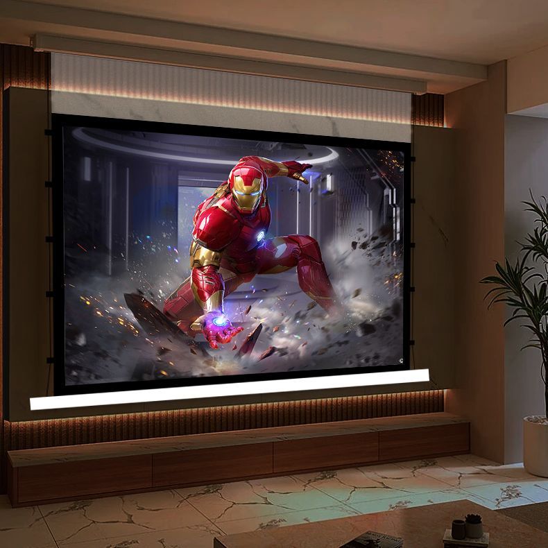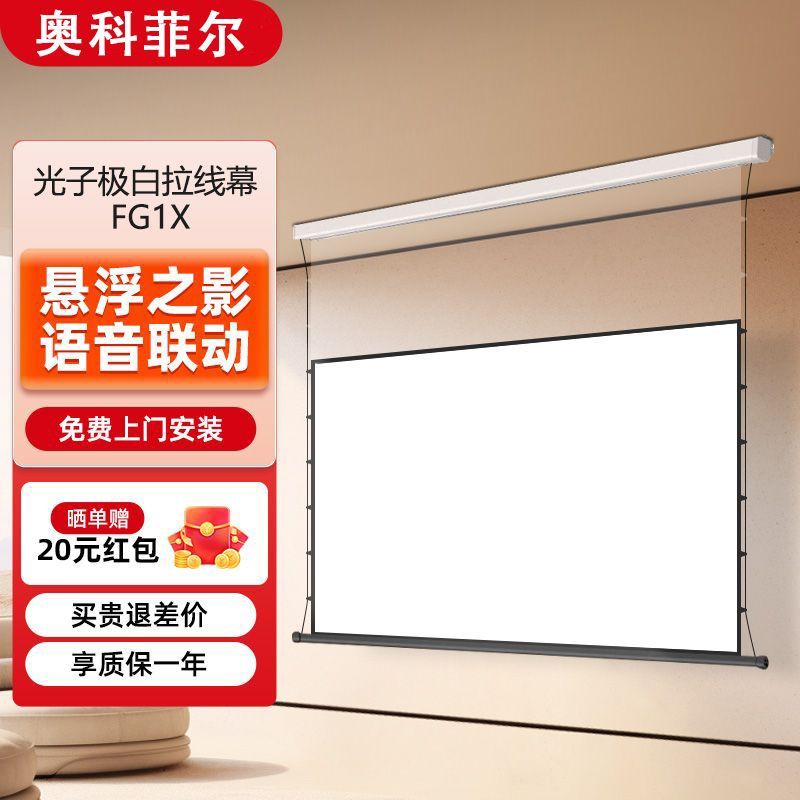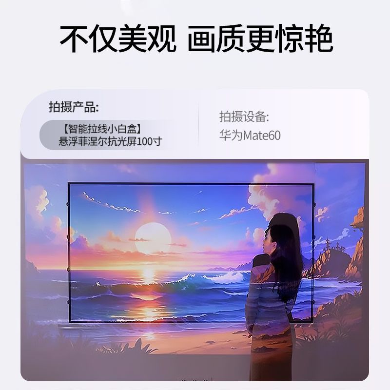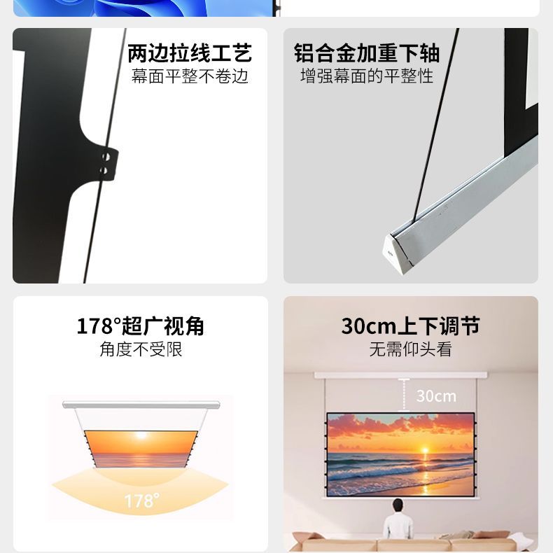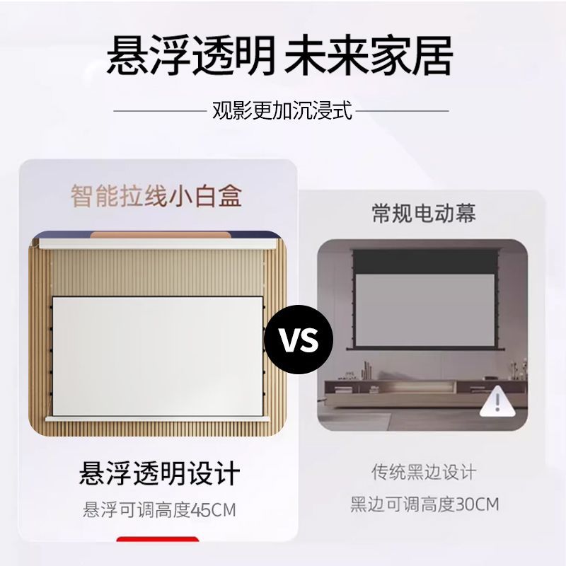 投影幕布小白盒一体式隐藏嵌入式光子悬浮电动拉线天花幕遥控升降