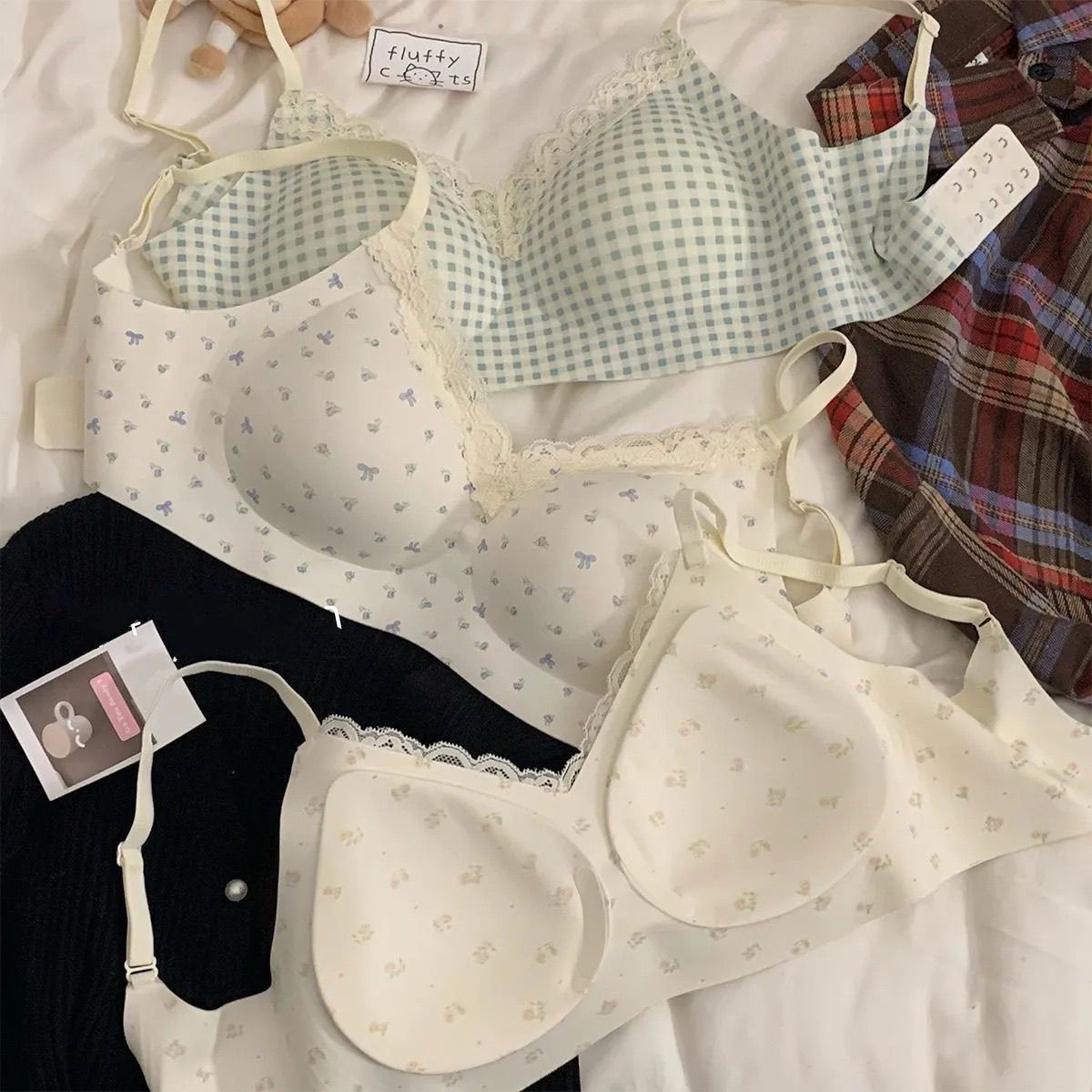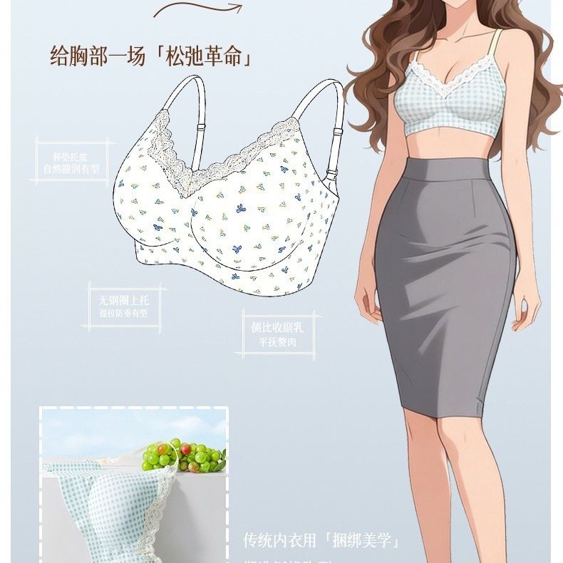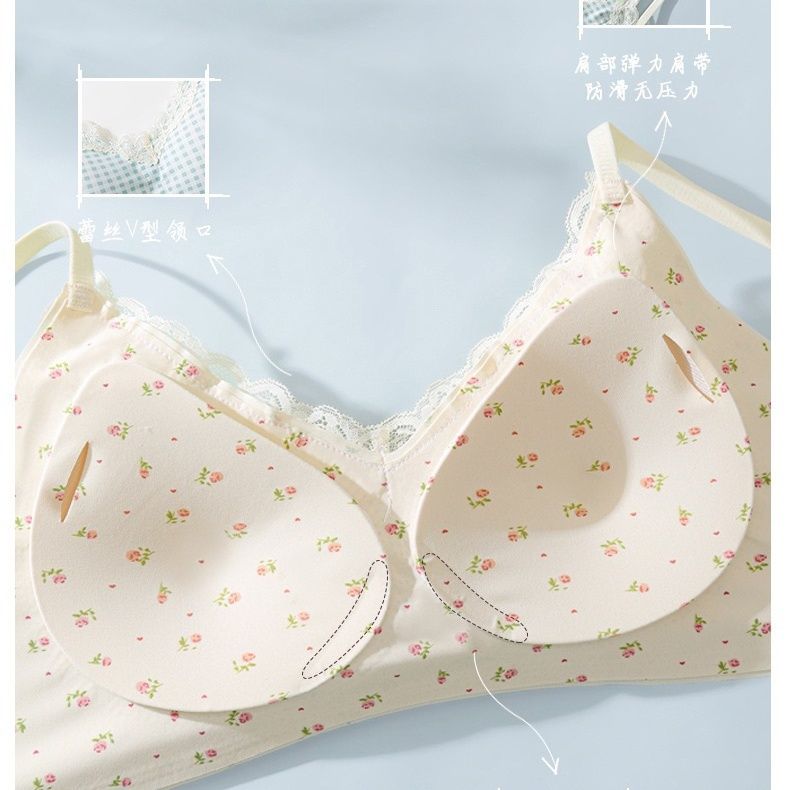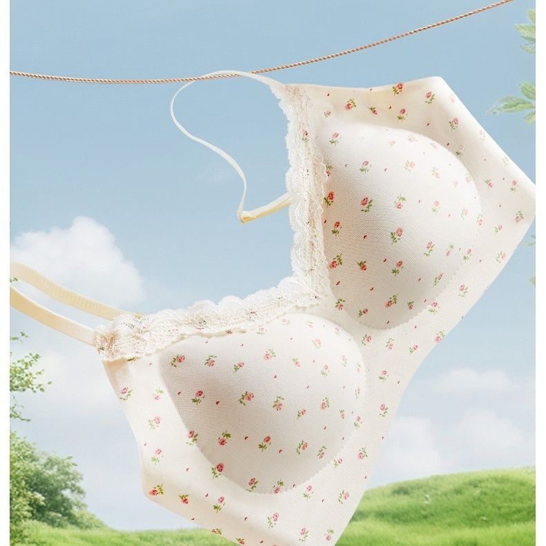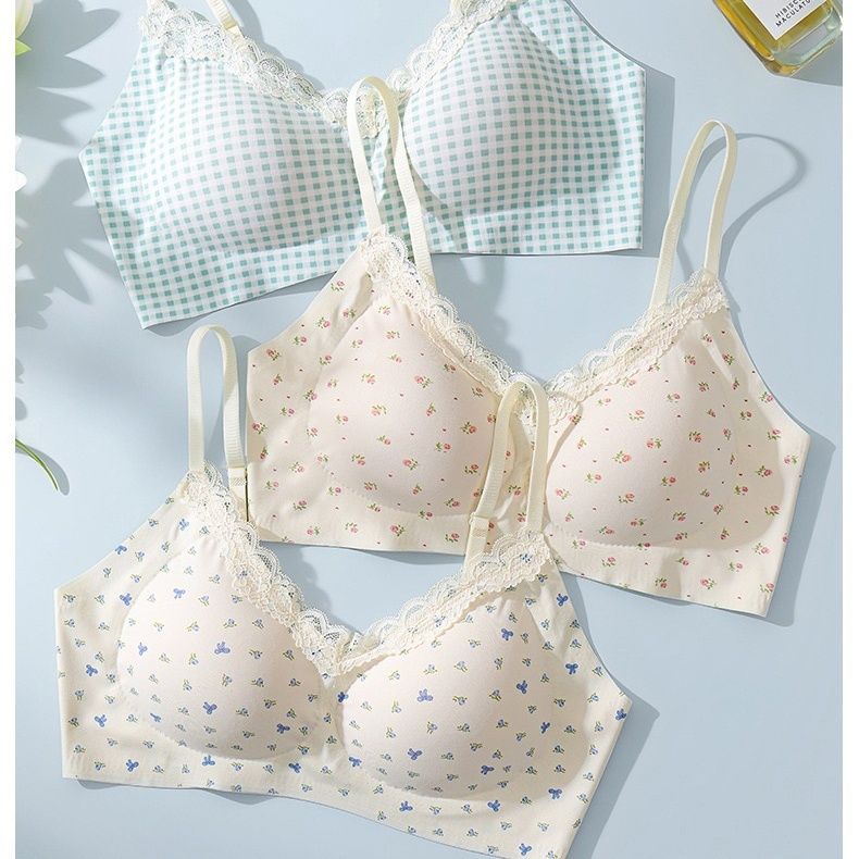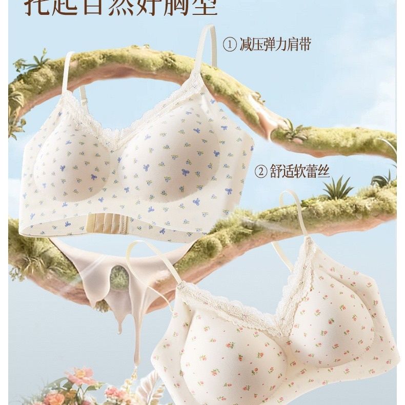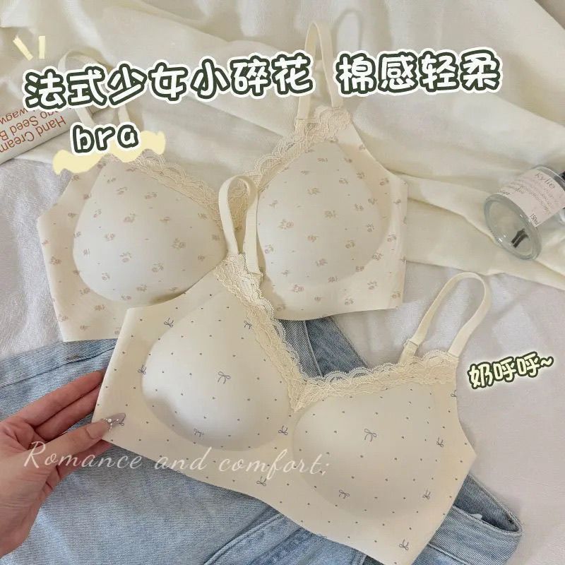 【2件装】法式碎花无痕内衣少女圆圆杯聚拢防下垂软支撑文胸