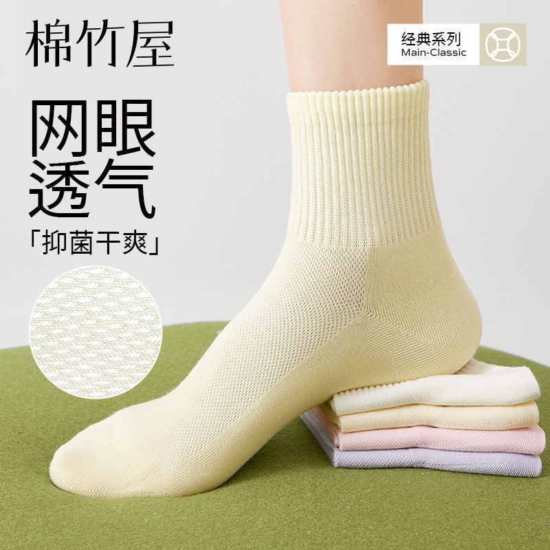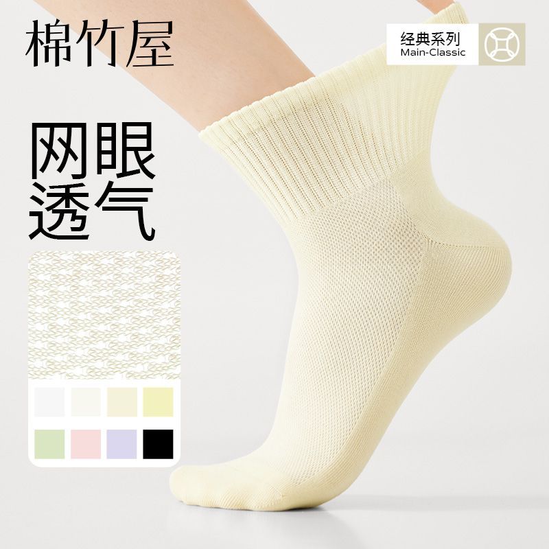 【棉竹屋】袜子女夏季薄款中筒袜网眼透气散热不闷吸湿排汗中筒袜