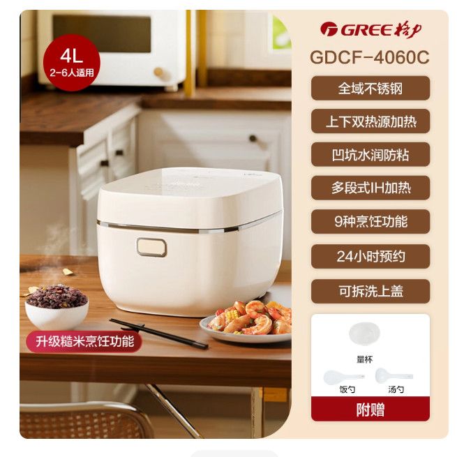 【2025新品】格力电饭煲0涂层全域不锈钢4L家用2-6人IH电磁4060c