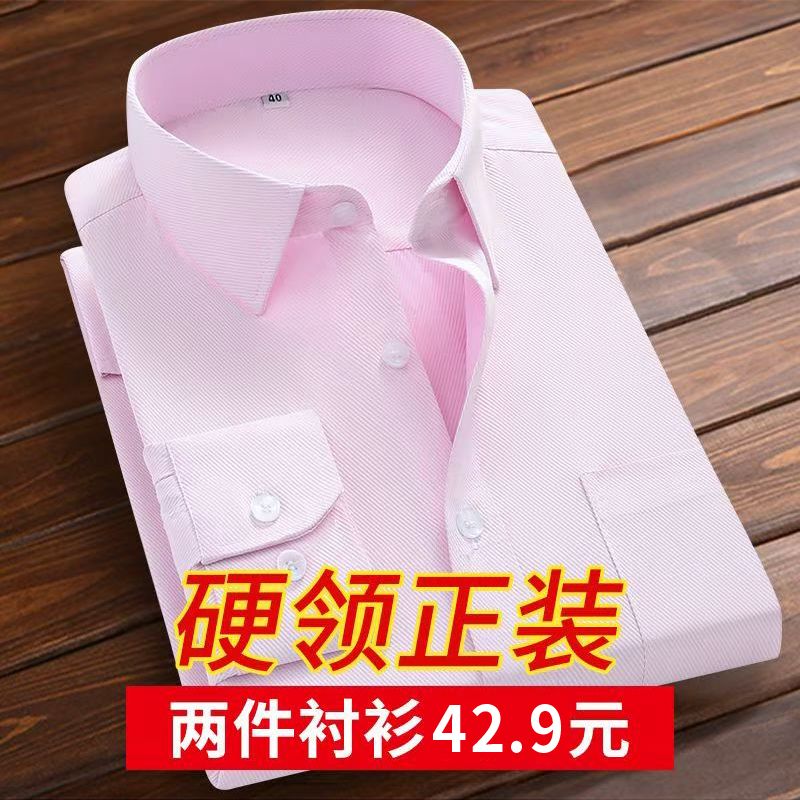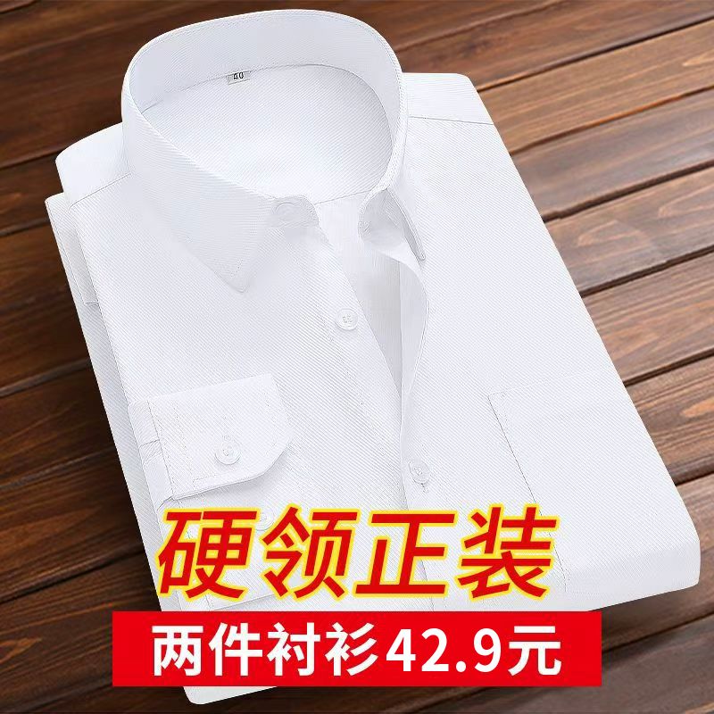 蓝色衬衫男长袖春夏职业装修身蓝衬衣商务白色工作服上班免烫正装