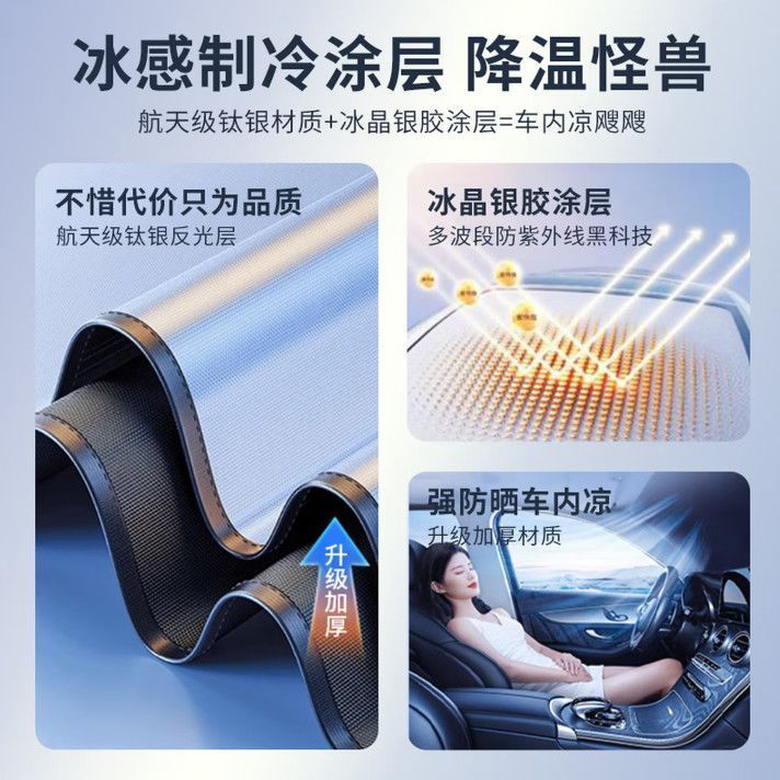 零帕汽车遮阳前挡 钛银加厚0透光 车内降温神器