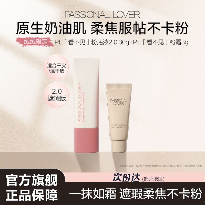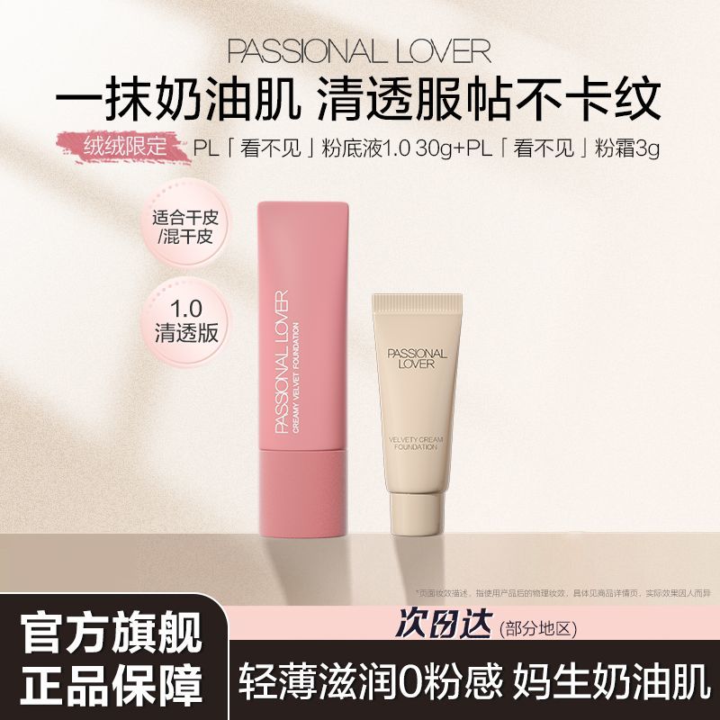 【绒绒限定】PL看不见1.0/2.0粉底液轻薄遮瑕滋润奶油肌持妆服帖