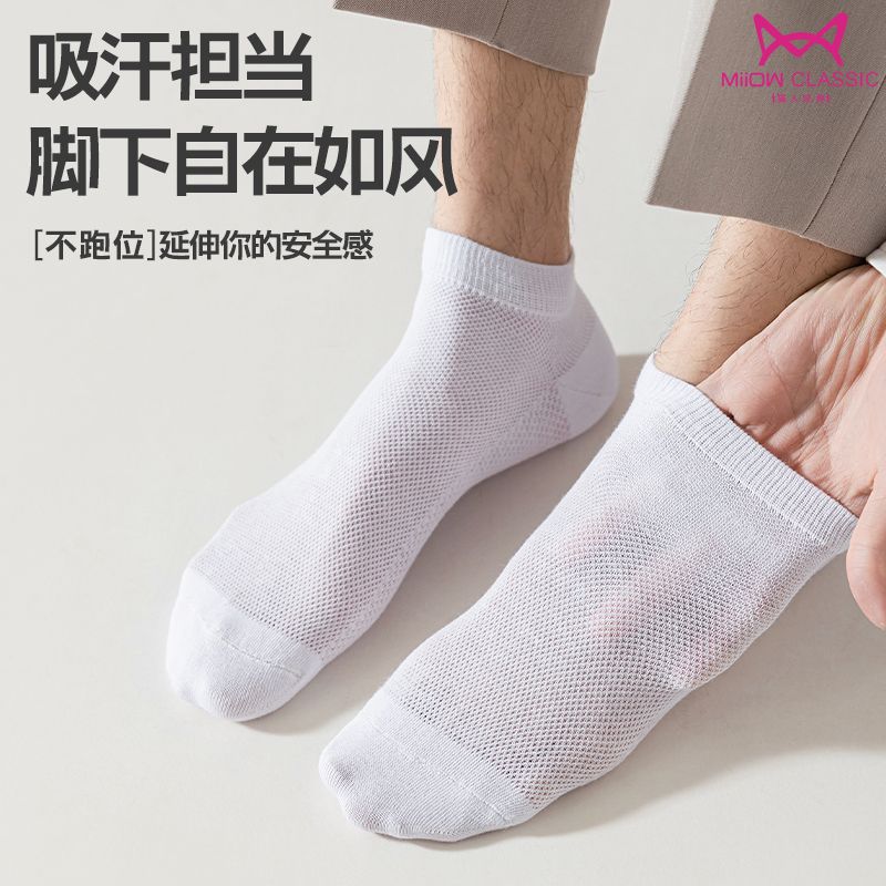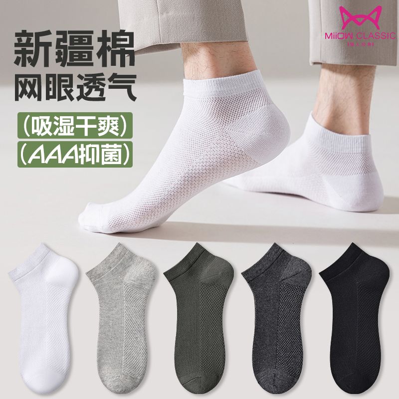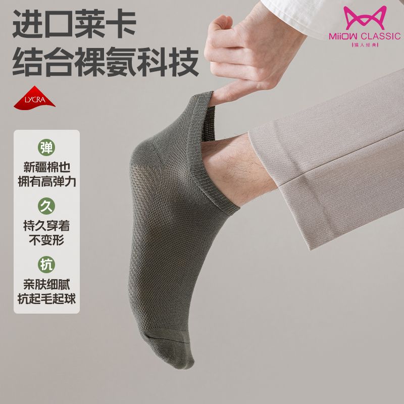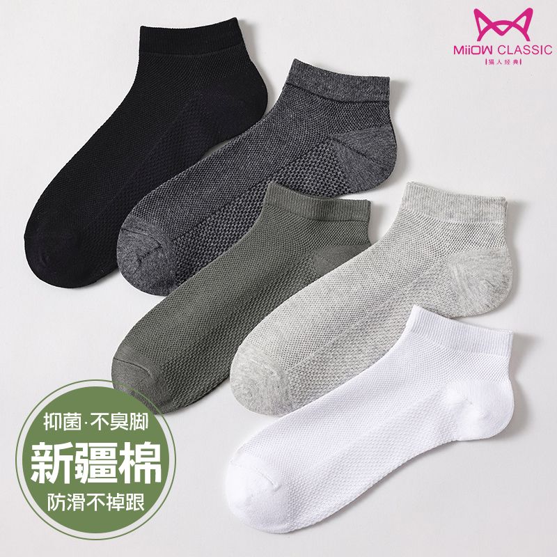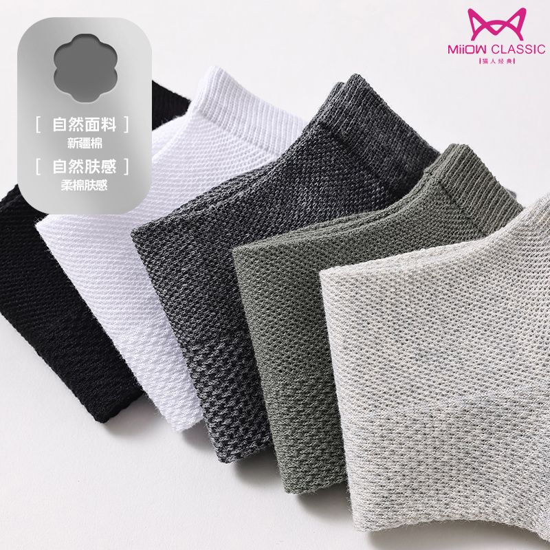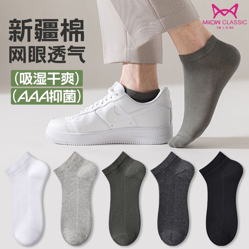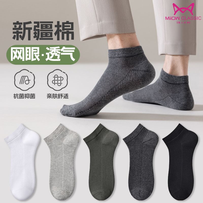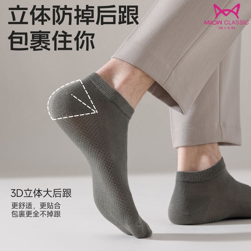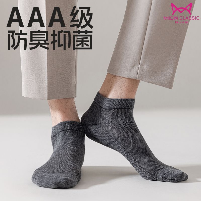 猫人袜子男士船袜春夏季薄款抗菌防臭休闲袜吸汗透气简约短款男袜