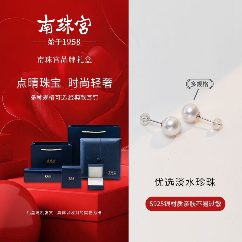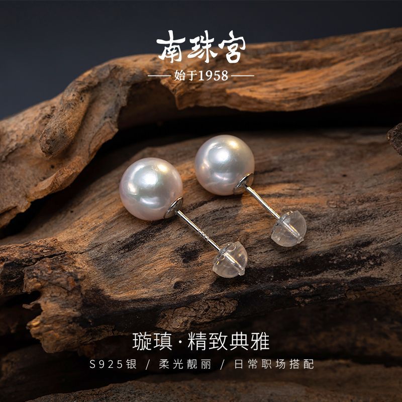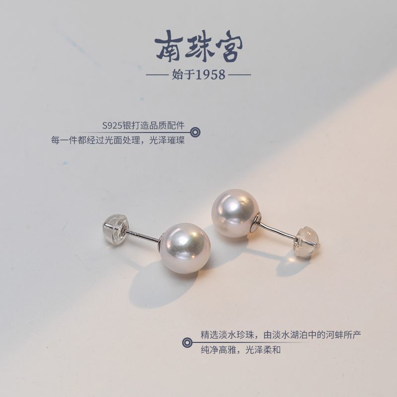 南珠宫[璇瑱]淡水珍珠耳钉S925银简约时尚职场搭配生日礼物